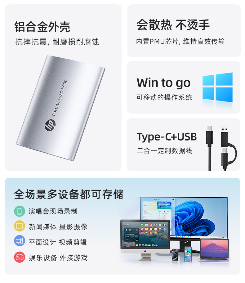 [Национальная субсидия 15%] Твердотельный мобильный жесткий диск HP 2t большой емкости можно подключить к мобильному телефону Apple и компьютеру, USB-накопитель двойного назначения.