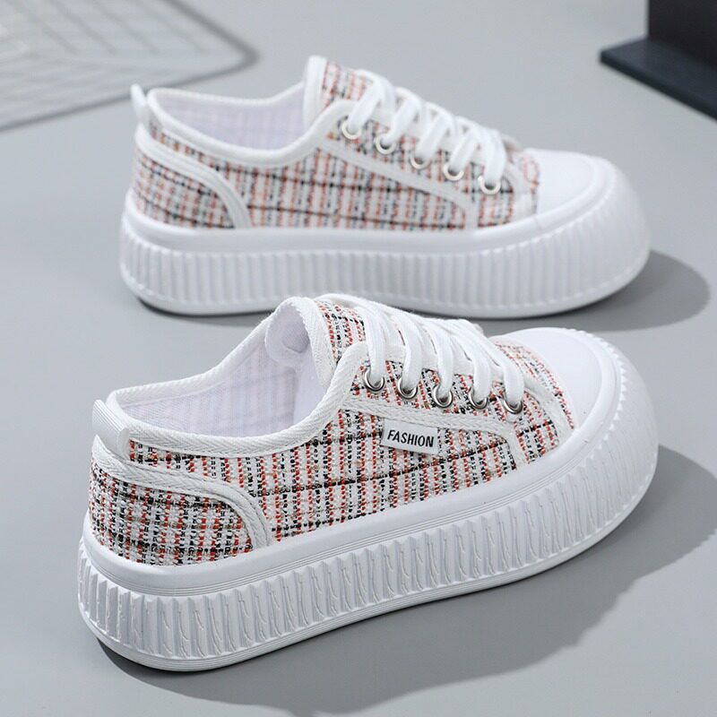Тканевая весенняя летняя обувь, высокие универсальные кроссовки на платформе, в корейском стиле