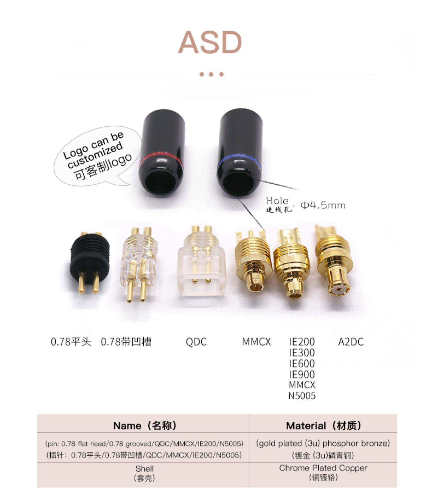 Hakugei Pin 0,78 Grape 0,78 плоская головка A2DC DQC IE200 MMCX DIY Сварка
