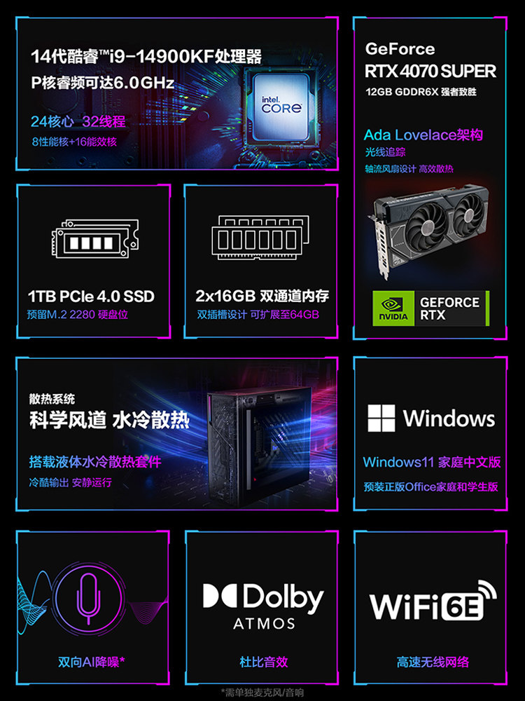 【Игра с Black Wukong】 Rog Ice Blade X 14-го поколения 14700KF/14900KF Mini Mini маленький шасси с водяным охлаждением охлаждение электронного вагона RTX4070S Game Host Desktop Computer Asus Complete Machine