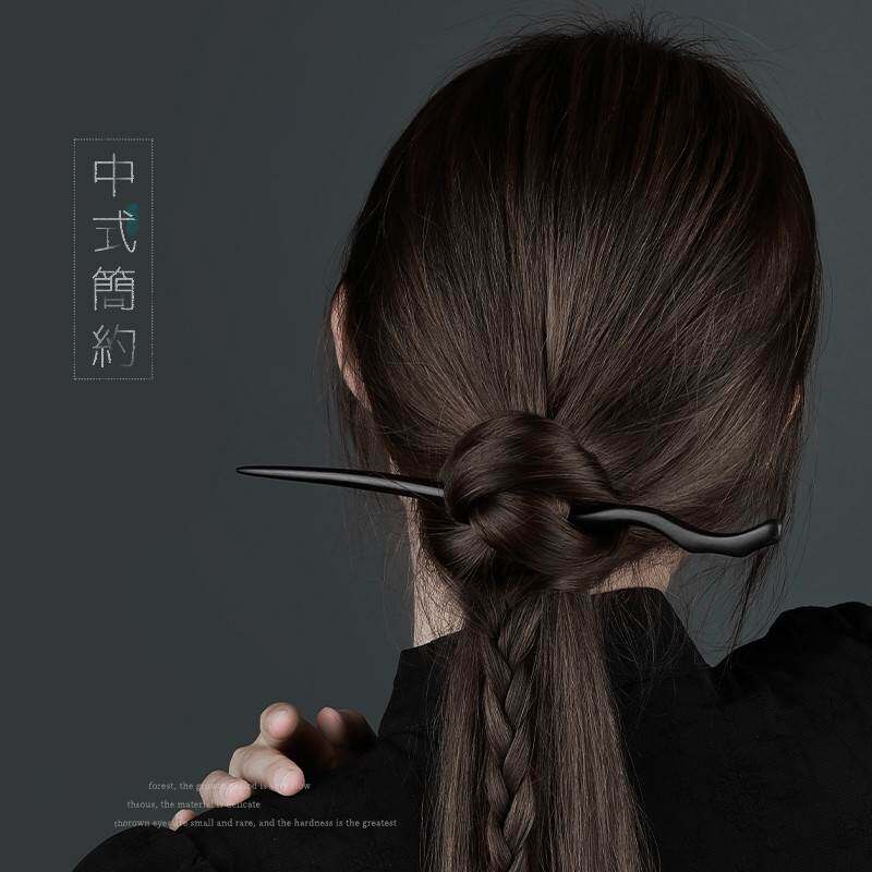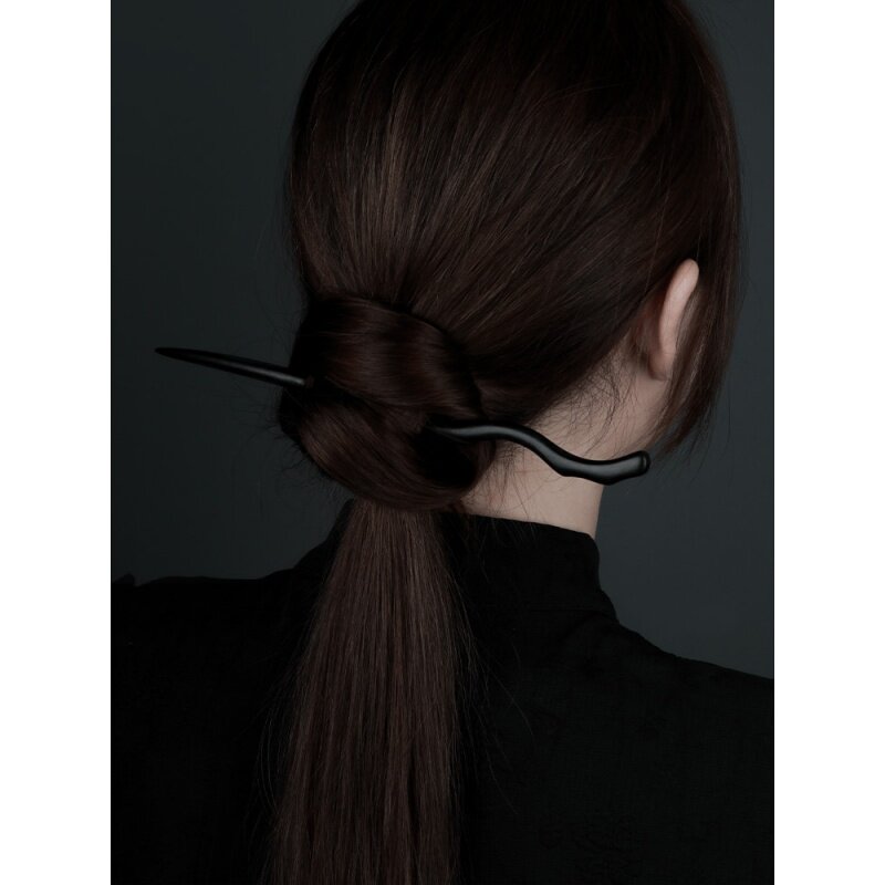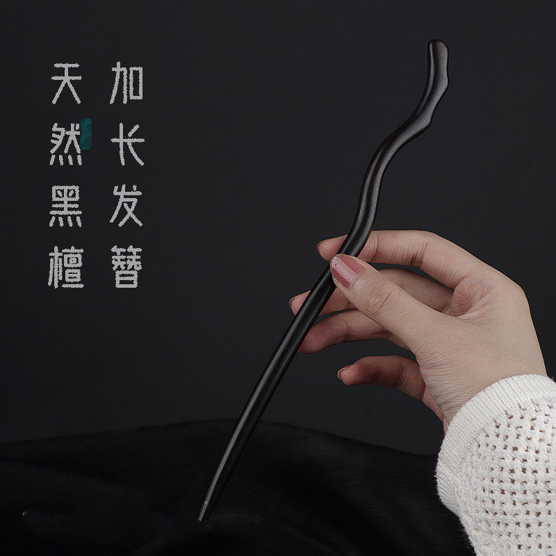Длинное деревянное ципао, натуральное ханьфу, китайская шпилька из черного дерева Эбен из сандалового дерева, заколка для волос, простой и элегантный дизайн, яркий броский стиль