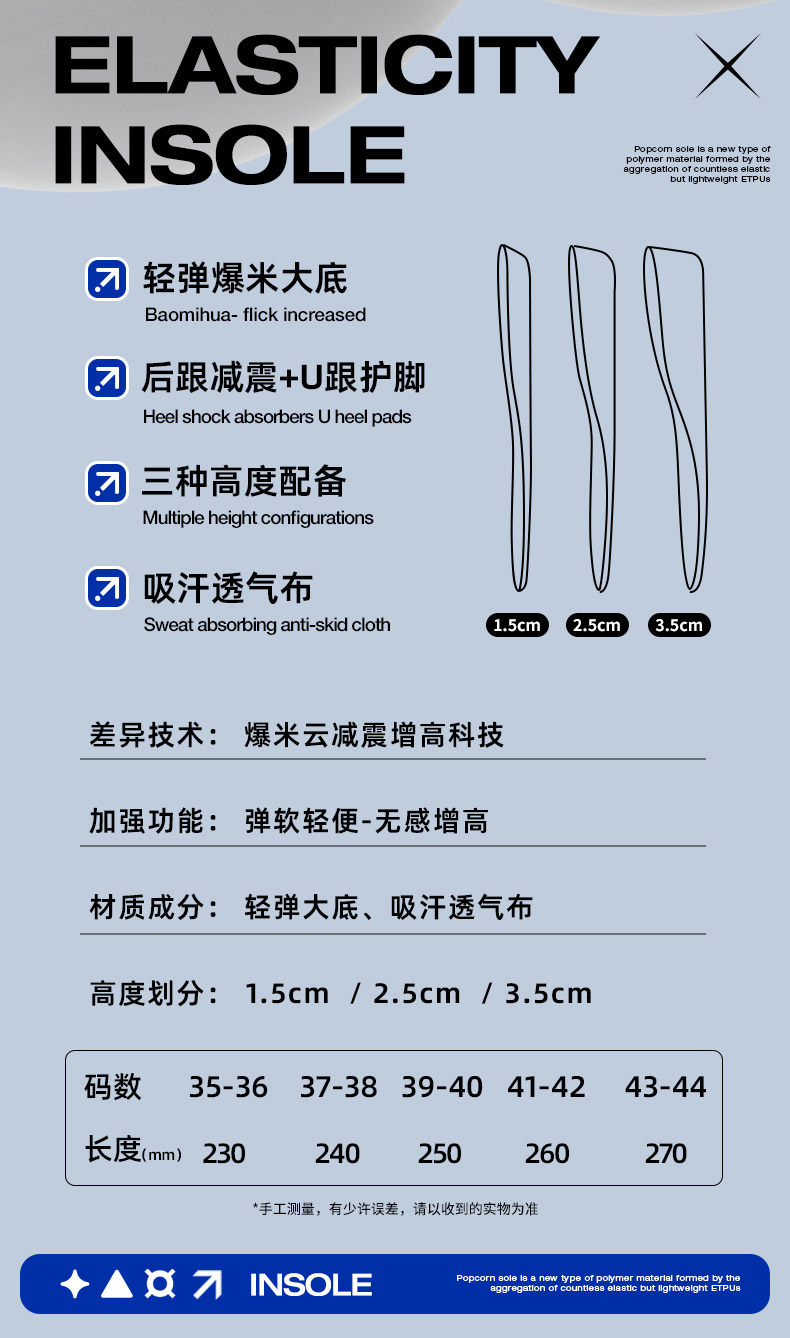 Мужские невидимые амортизирующие зимние стельки для увеличения роста