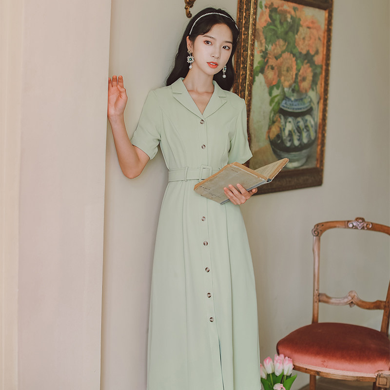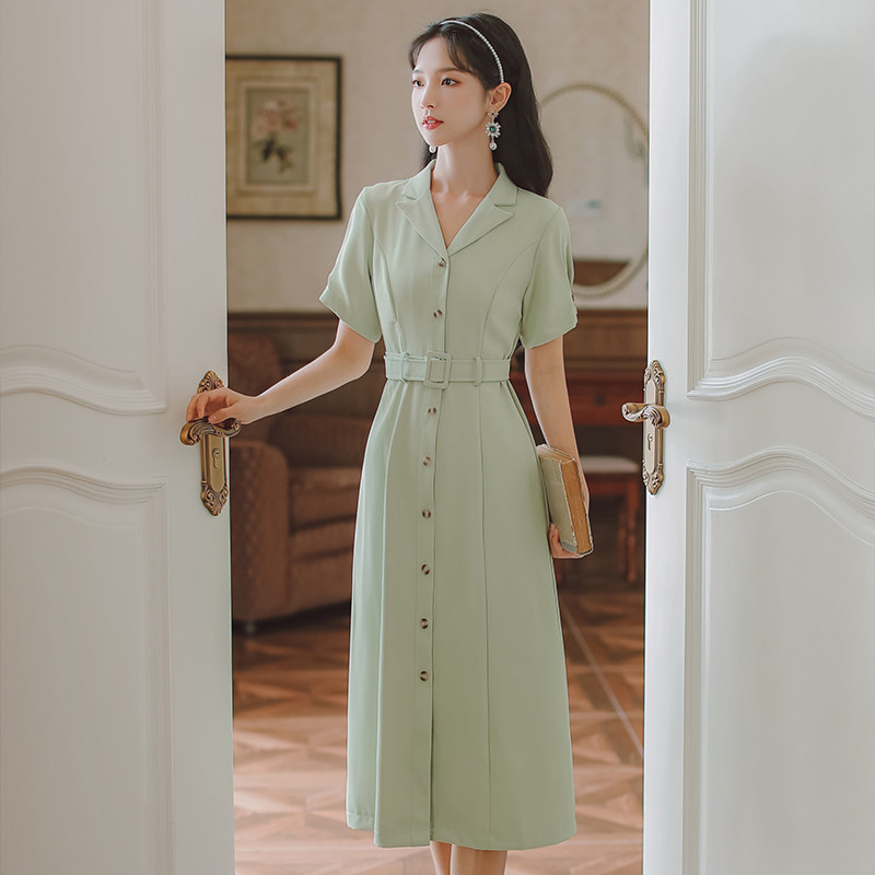 Зеленый однобортный костюм с воротником, платье для женщин, летние новые учебные материалы, одежда для собеседований с учителем, длинная юбка для официальных случаев