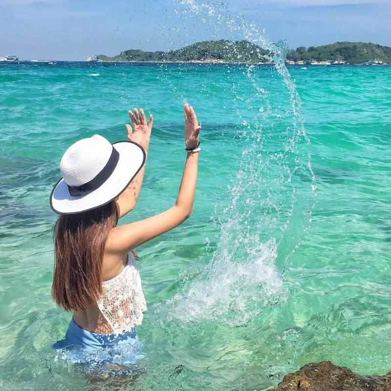 Большой остров Паттайя в Таиланде выходит в море для игр на воде и тура по проекту интернет-знаменитостей на моторной лодке-банане с зонтиком