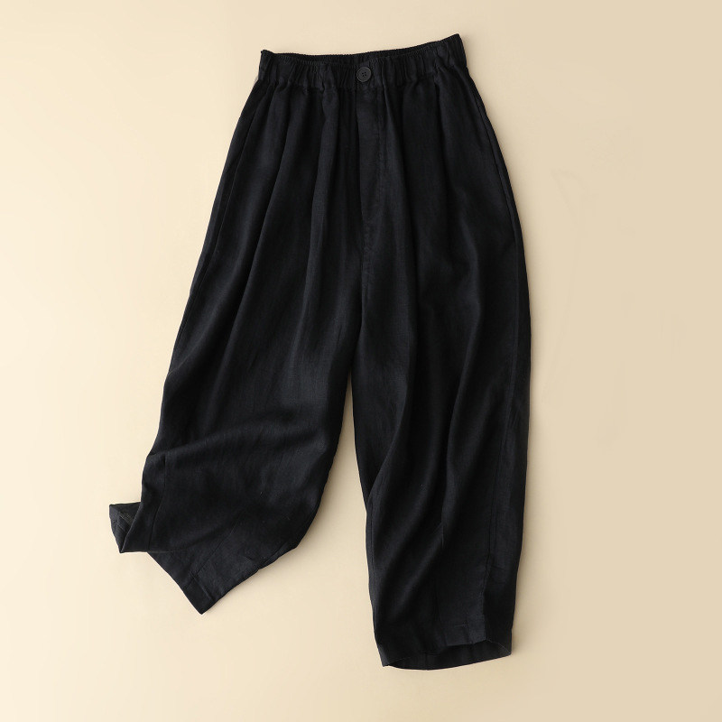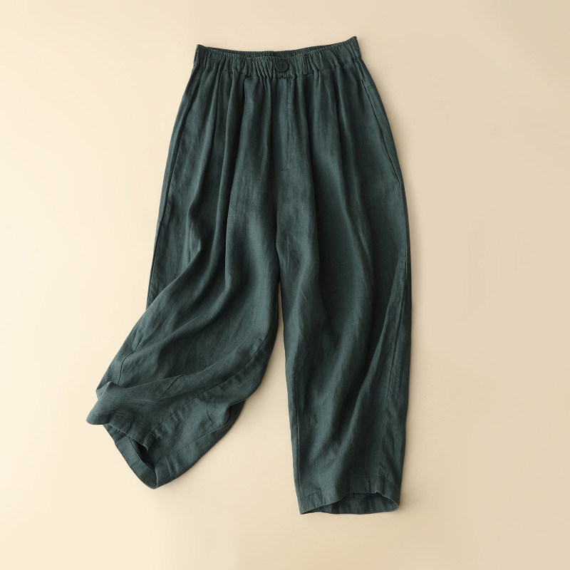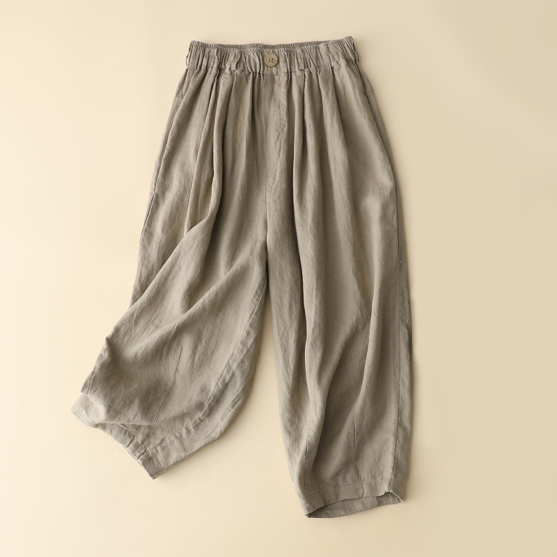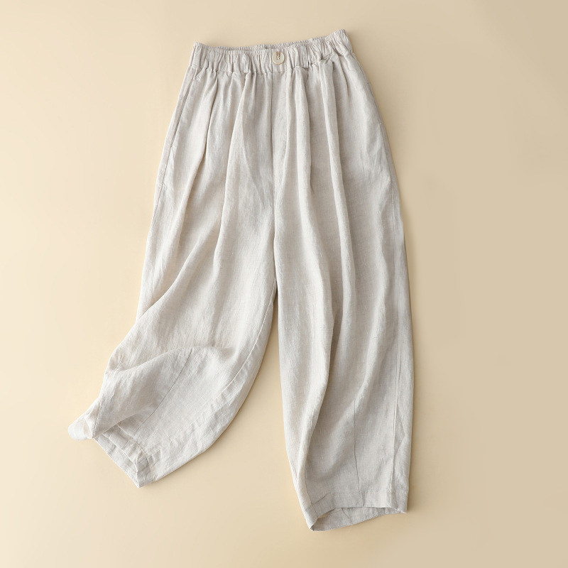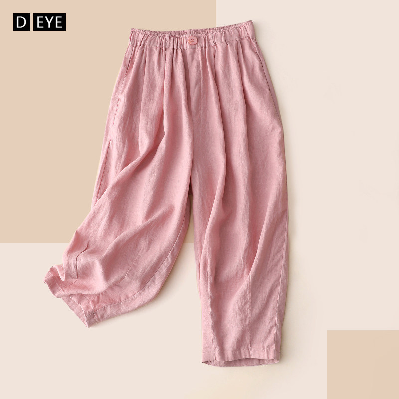 Розовые тонкие штаны, свободный крой, эластичная талия, из хлопка и льна