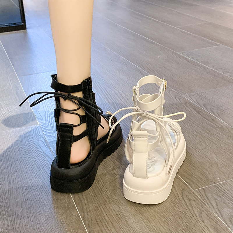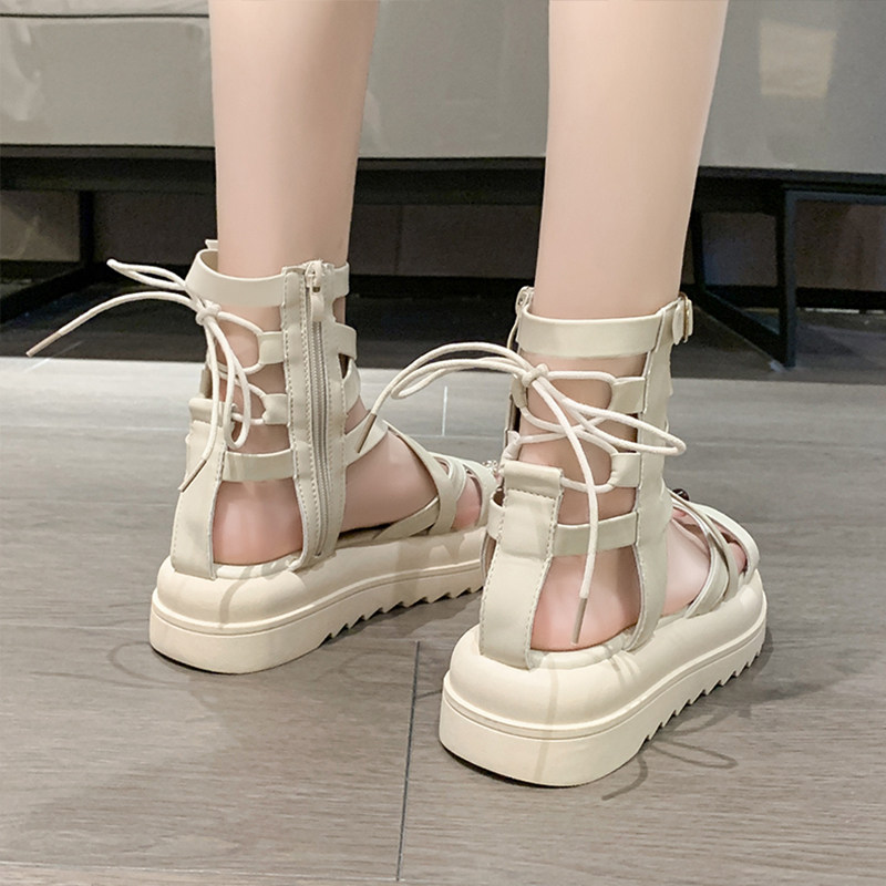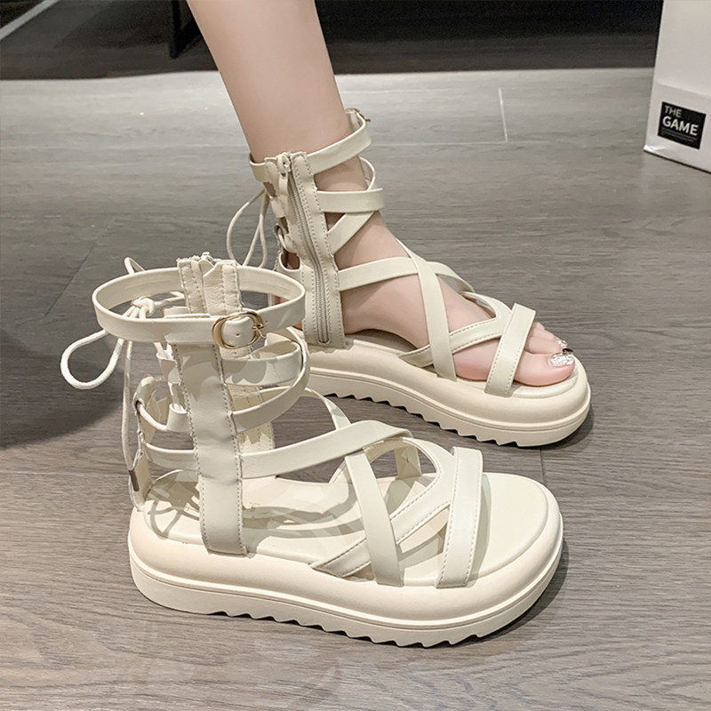 Ремень, сандалии, летняя обувь, универсальные небольшие дизайнерские высокие сапоги на платформе, популярно в интернете, 2025 года, тренд сезона
