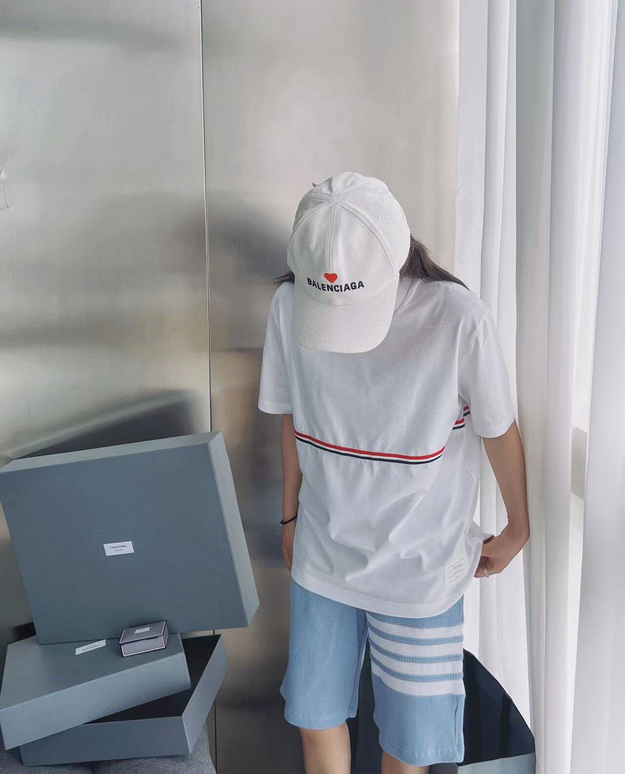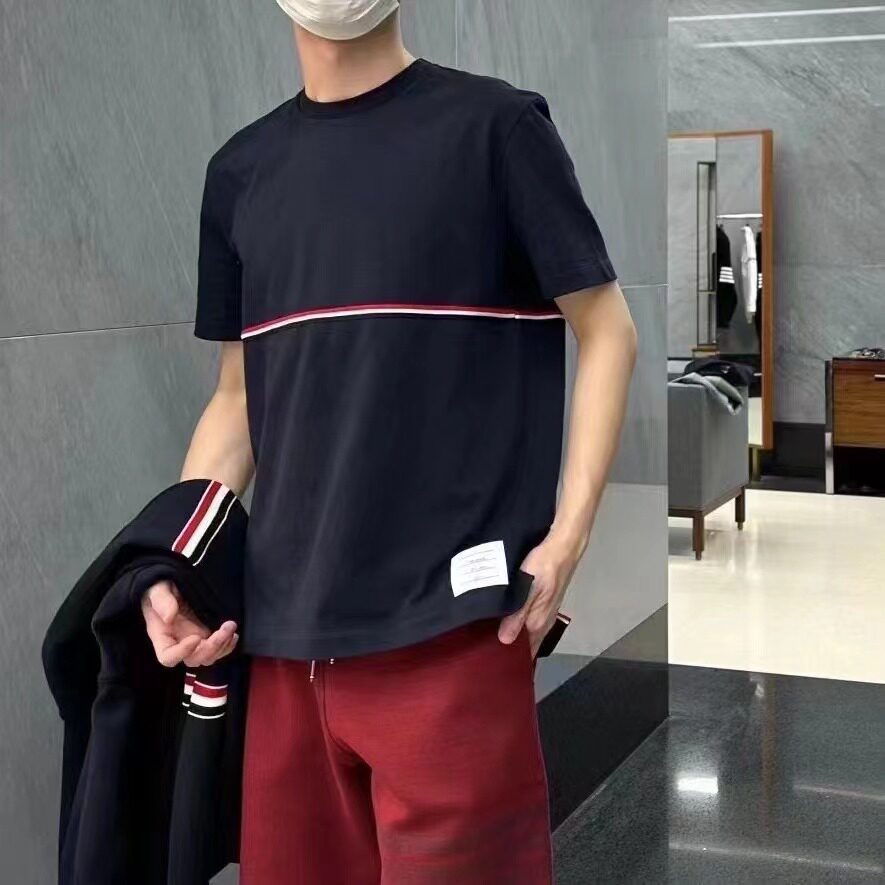Том Браун Япония купил 23 нового туберкулеза Классика Классика Горизонтального цвета хлопка с коротким рукавом и женщинами