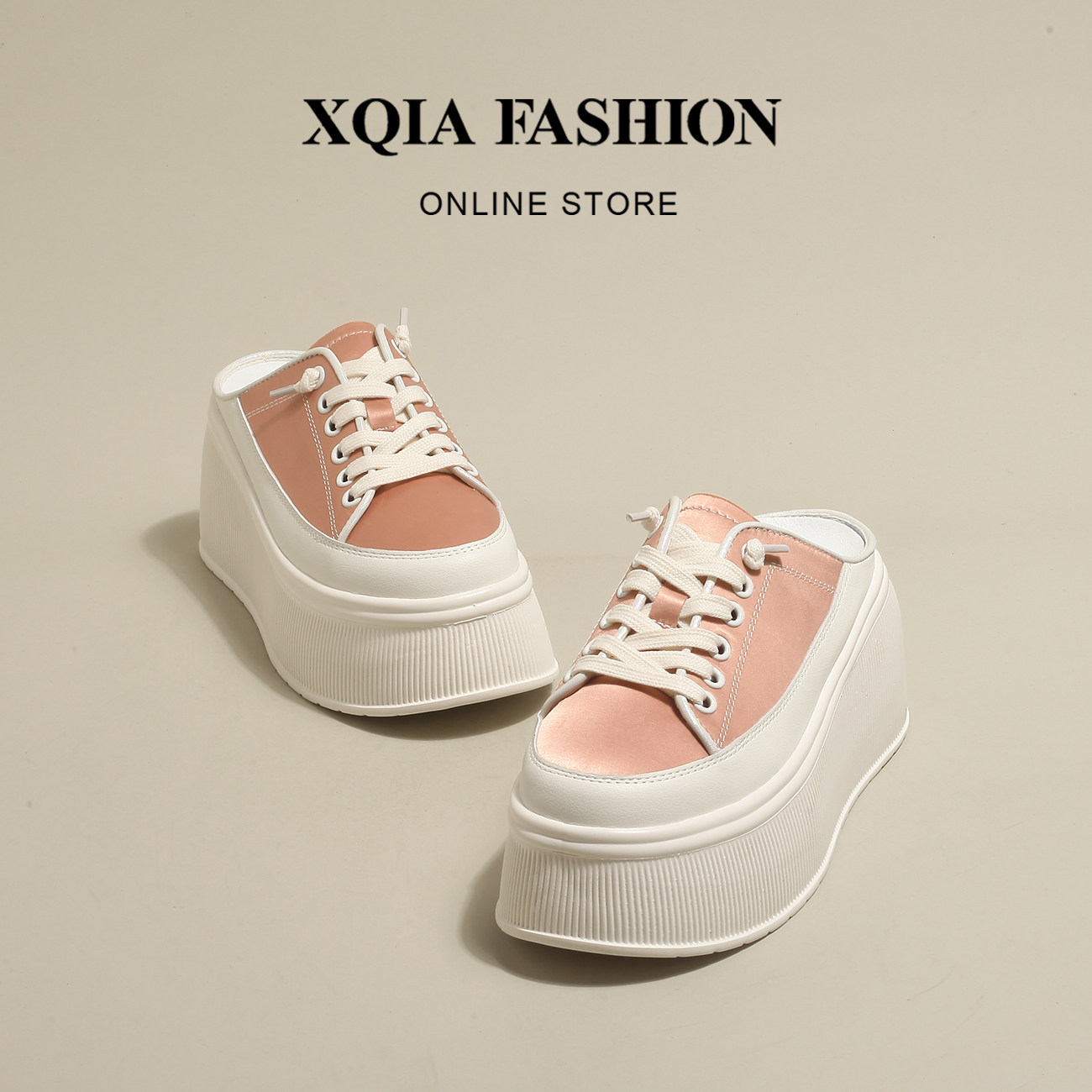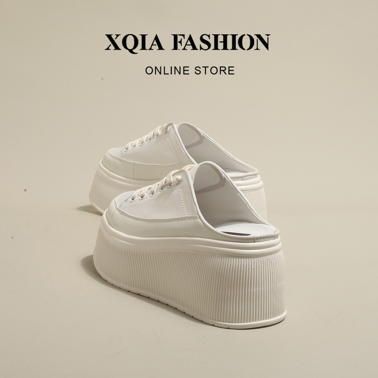 "Xiangqia" Monroe Girl ~ женские полутапочки с поднятым носком на толстой подошве, повседневные, дышащие и универсальные, белые слипоны один на один.