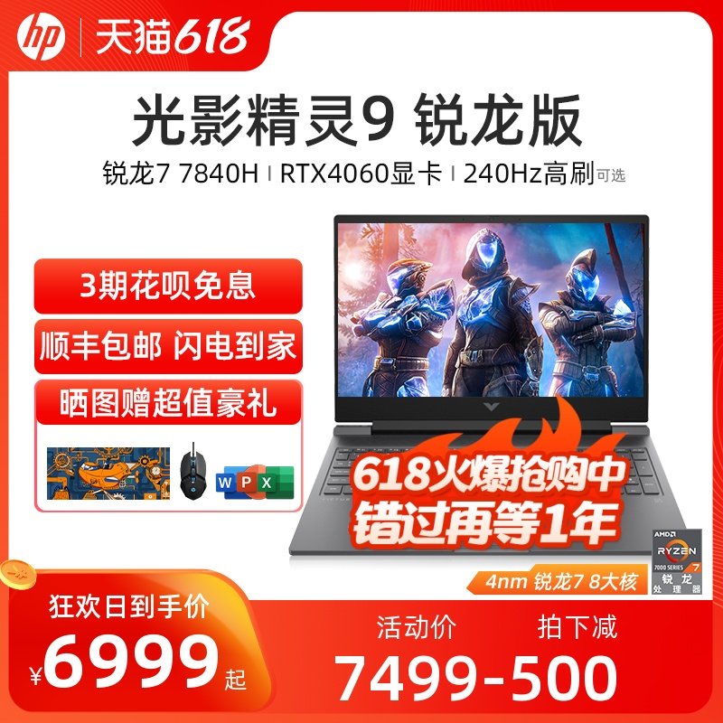 HP, игровой ноутбук, коллекция 2023, процессор AMD ryzen R7, RTX4060, 240гц, официальный флагманский магазин
