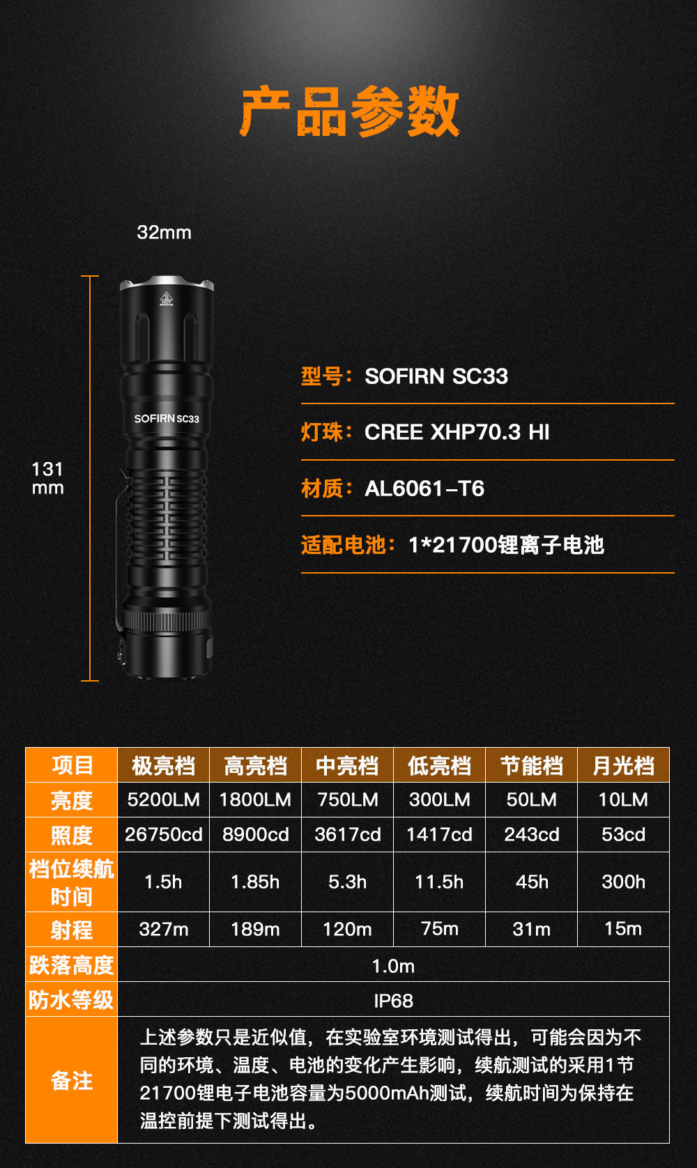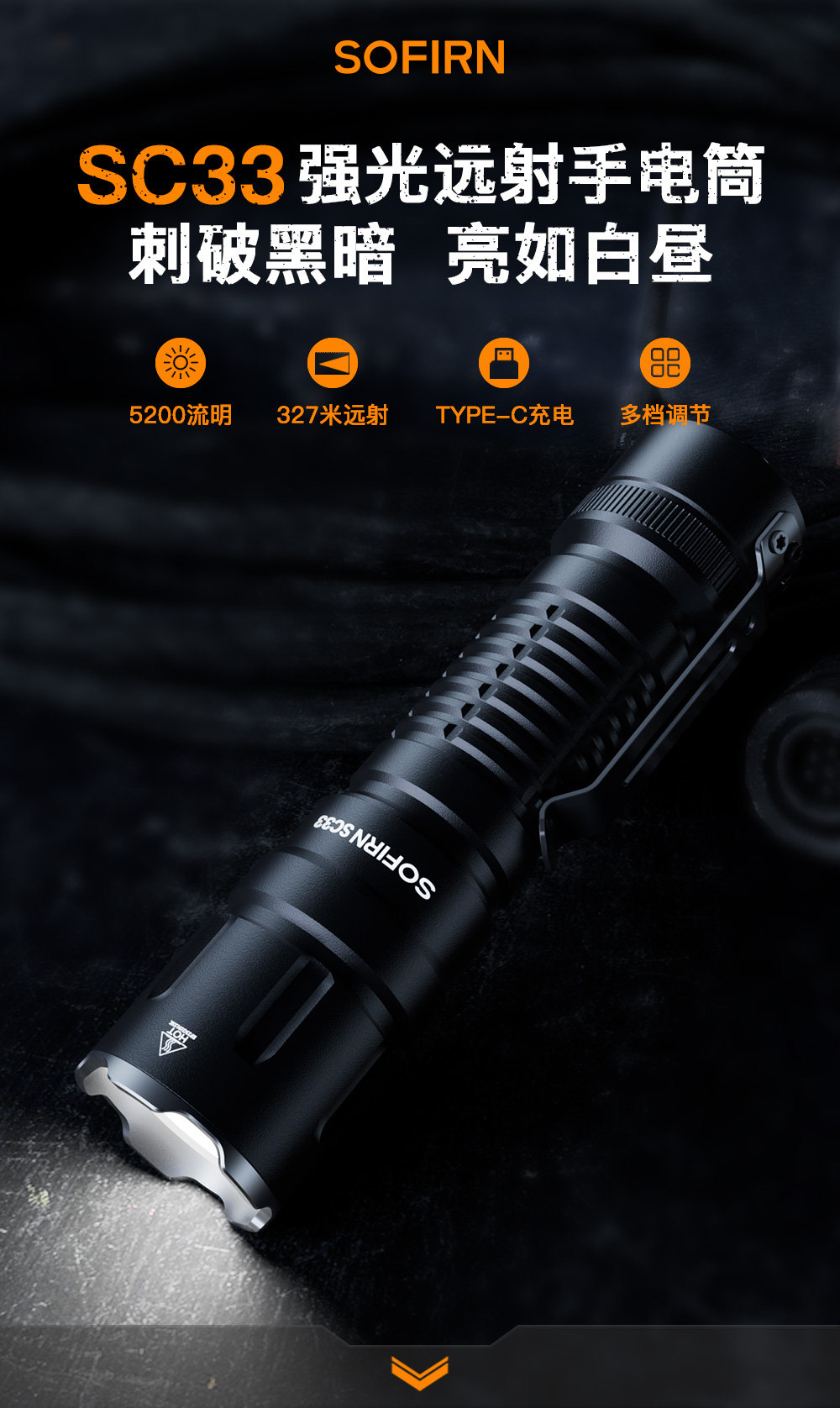Sophie SC33 Сильный светлый тактический фонарик 5200LMXHP70.3hi длинный выстрел на открытом воздухе.