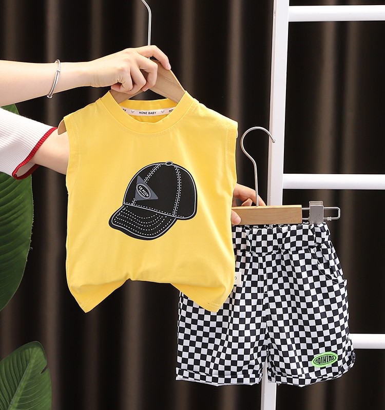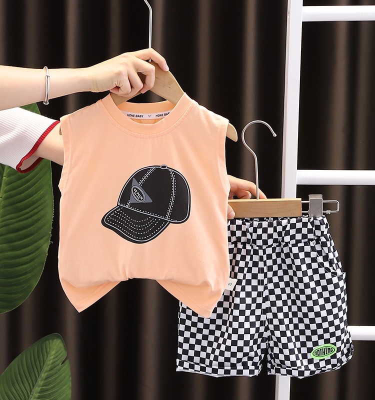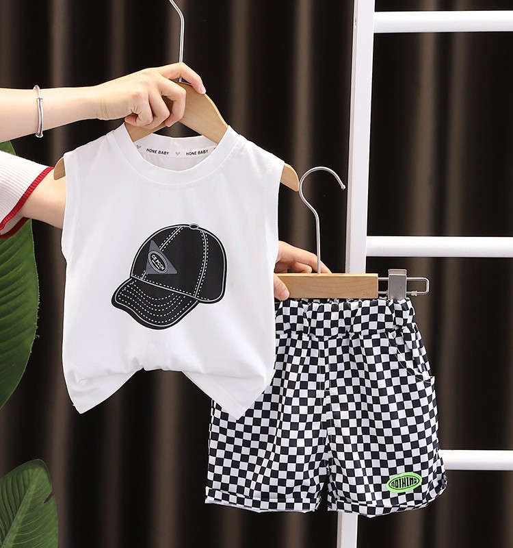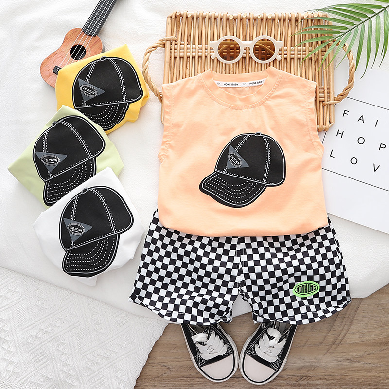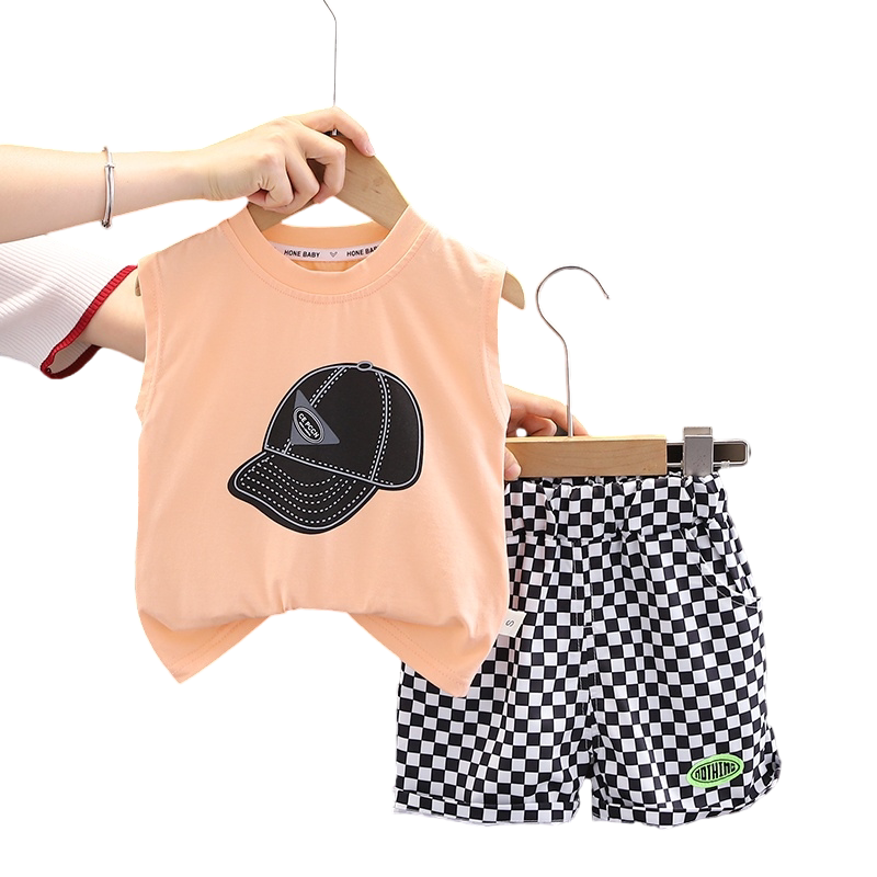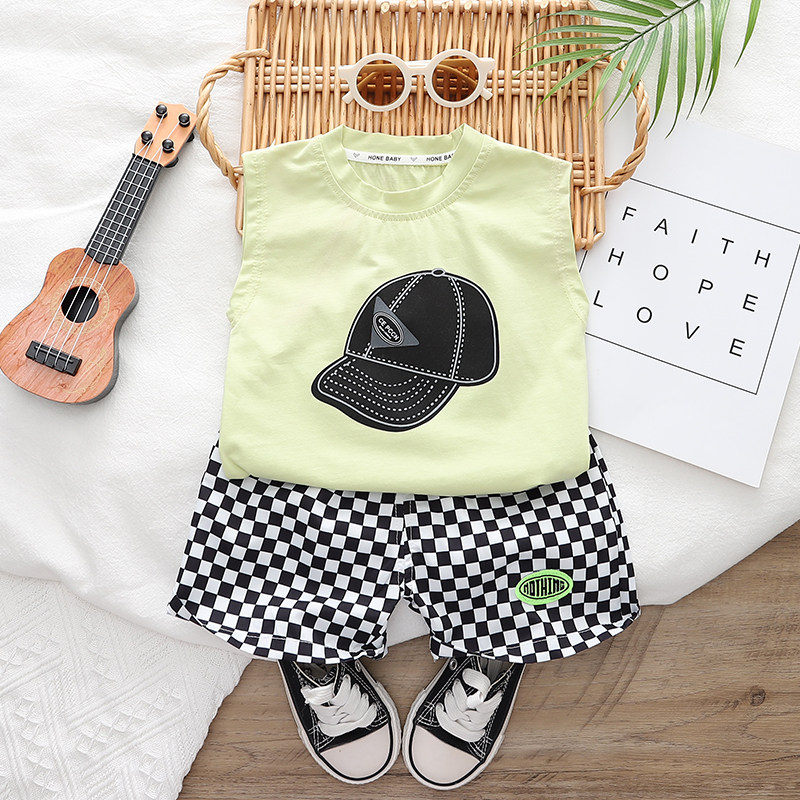 Летняя одежда, жилет, летний детский комплект для мальчиков, в западном стиле