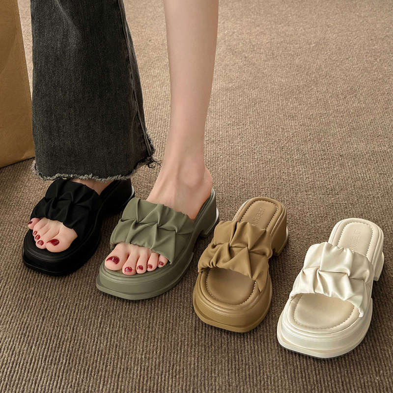 Тапочки на платформе, универсальная обувь для отдыха, пляжные слайдеры, коллекция 2023, популярно в интернете