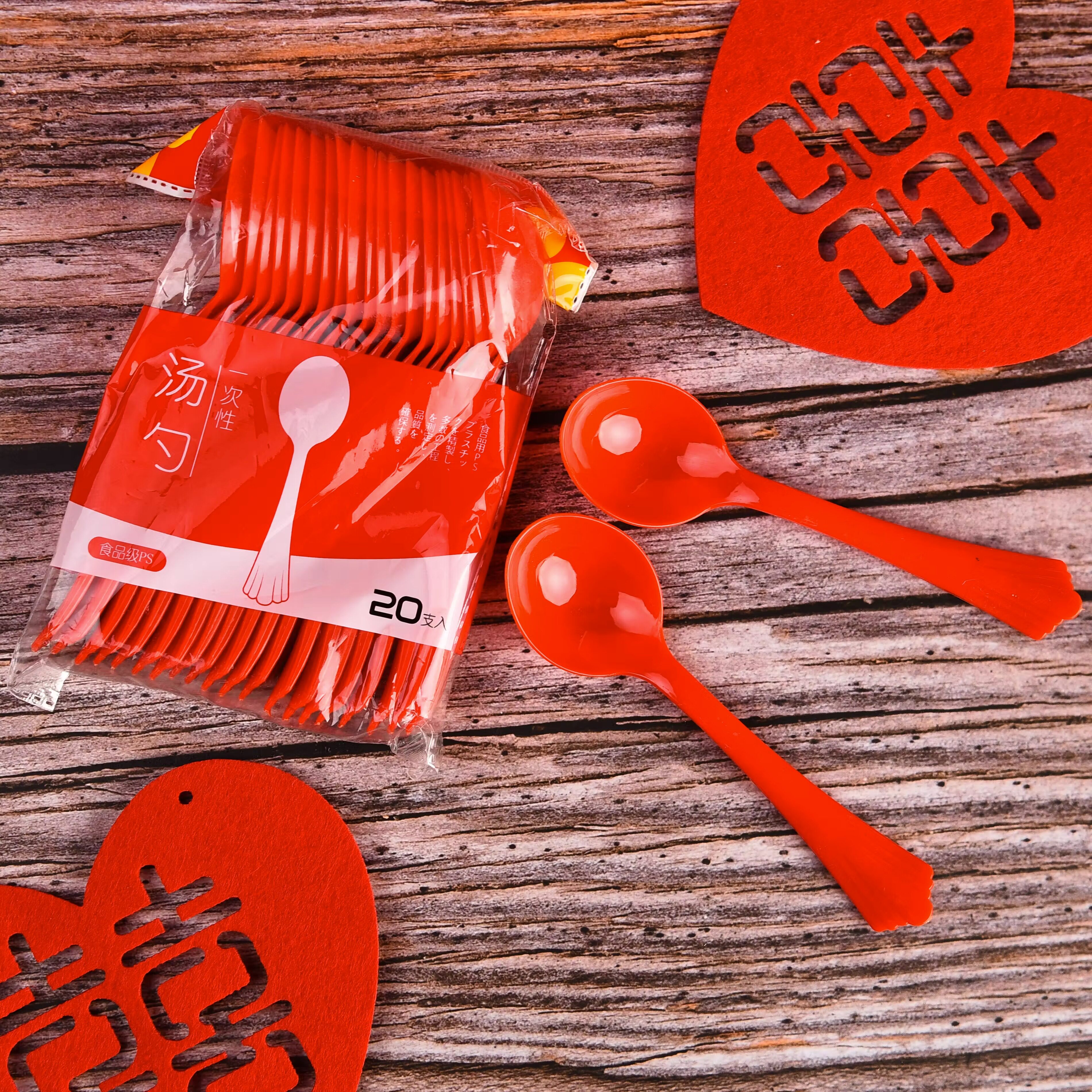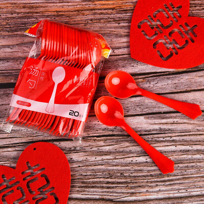 Одноразовая ложка большая красная ложка горячая -хот -хот -еда -кладовая Материальная ложка ложка удлиняется