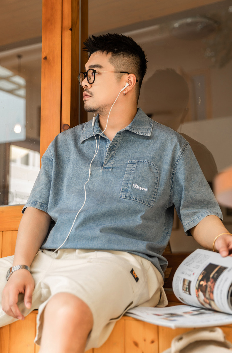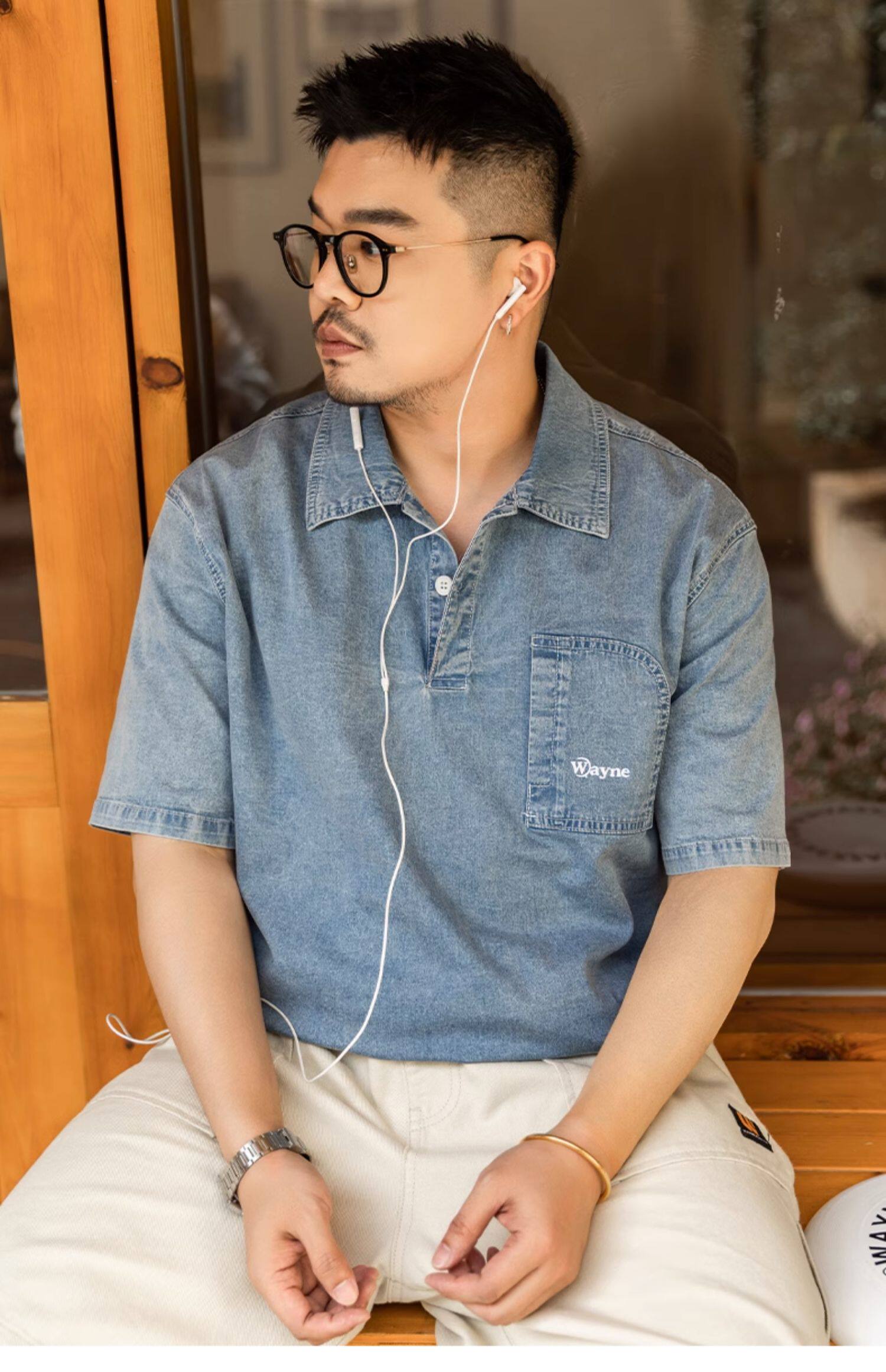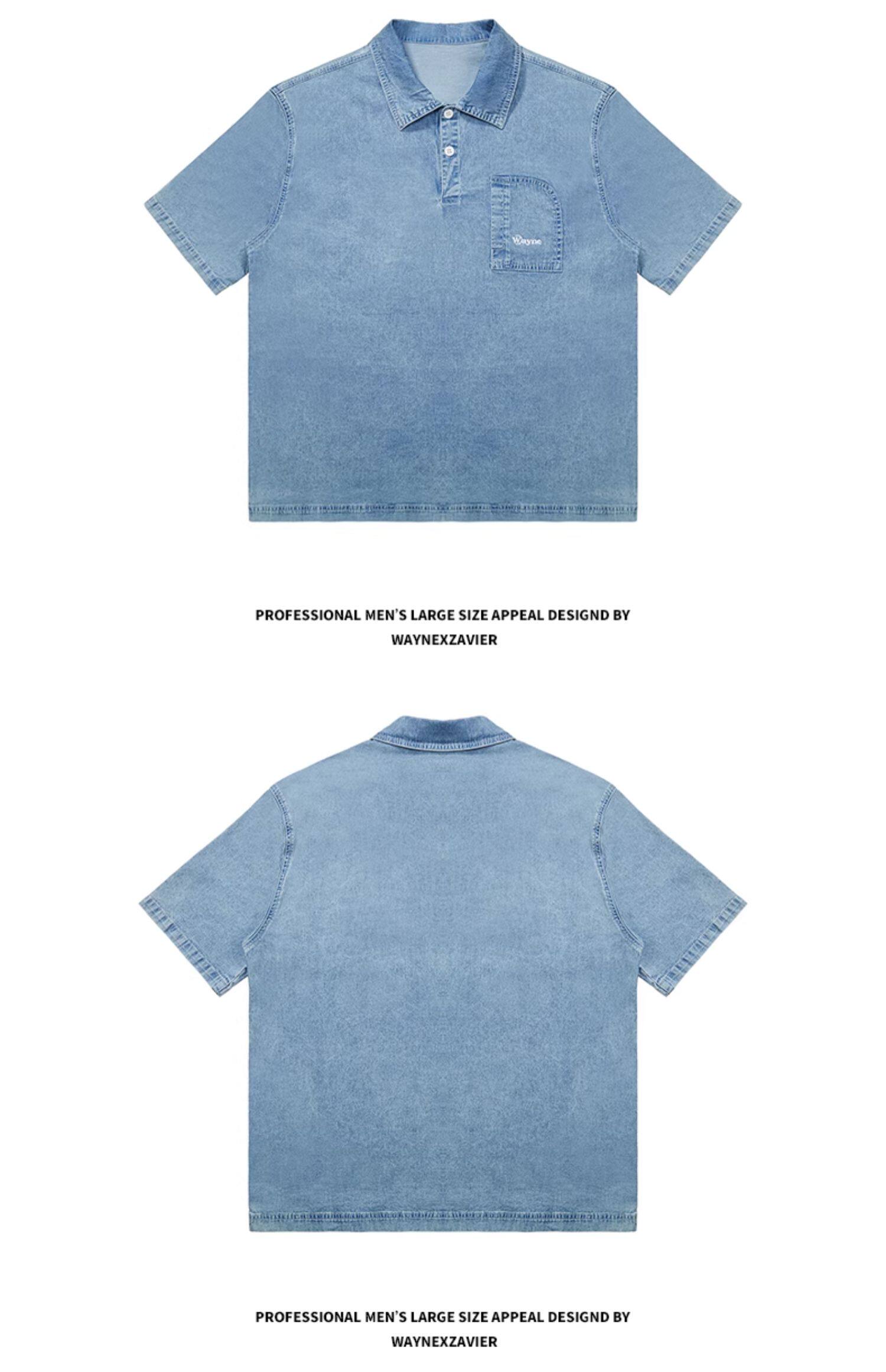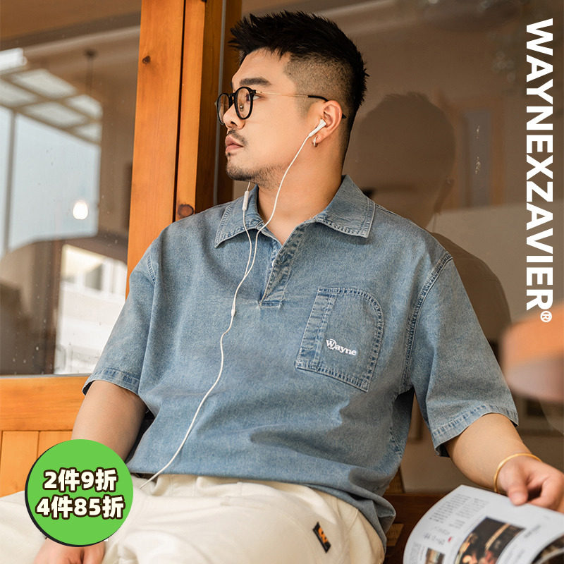 Джинсовая футболка polo, летняя японская рубашка, большой размер