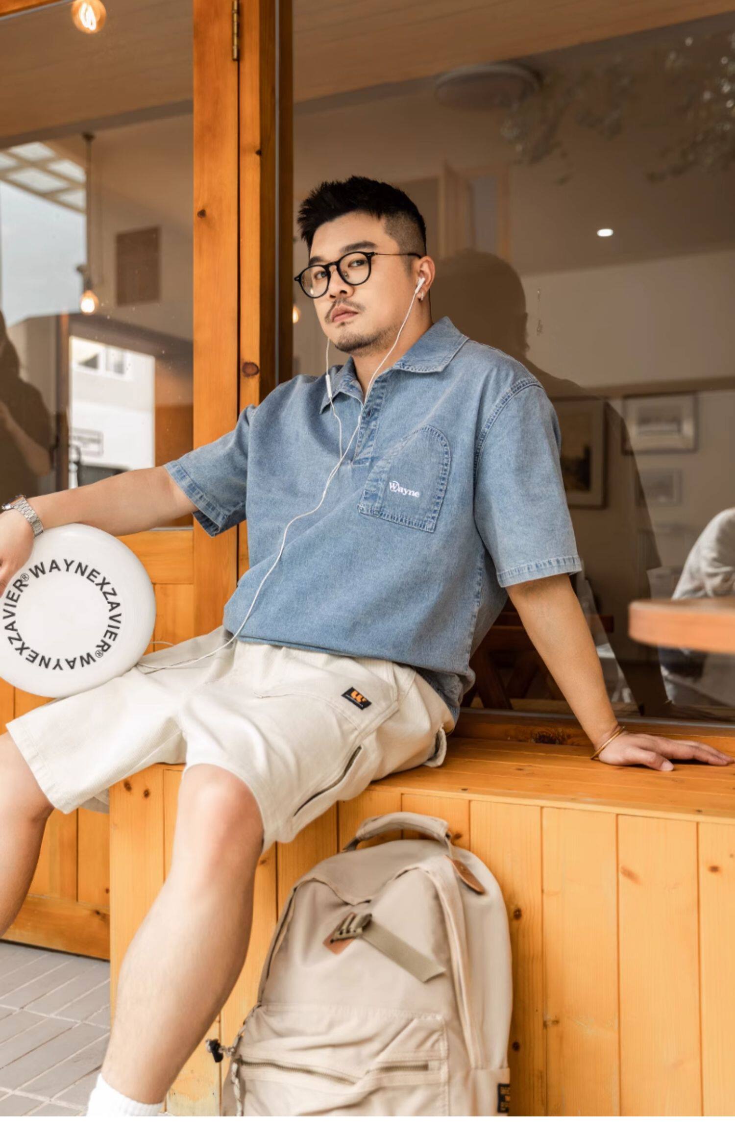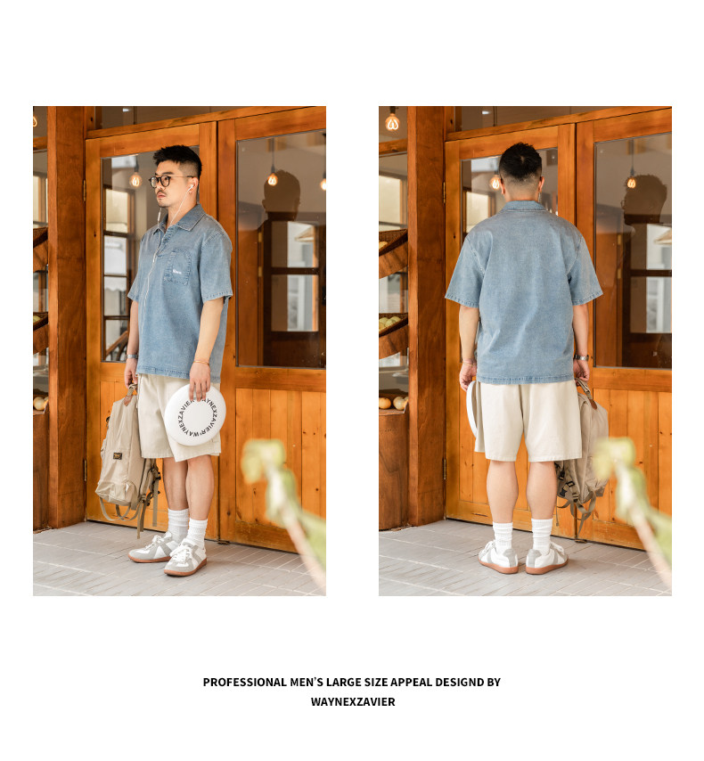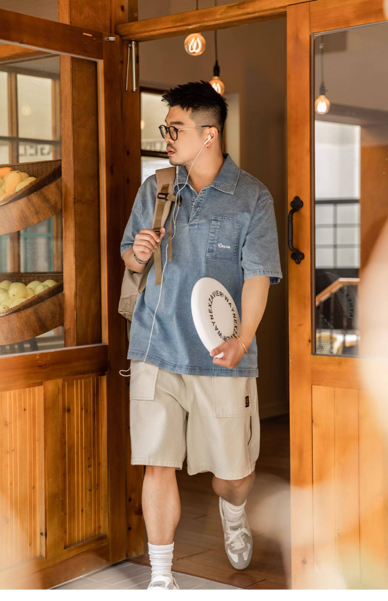 Джинсовая футболка polo, летняя японская рубашка, большой размер