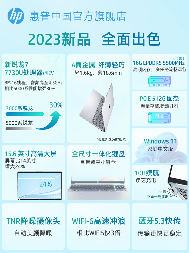 HP, легкий портативный ноутбук для школьников, процессор AMD ryzen R5, официальный флагманский магазин