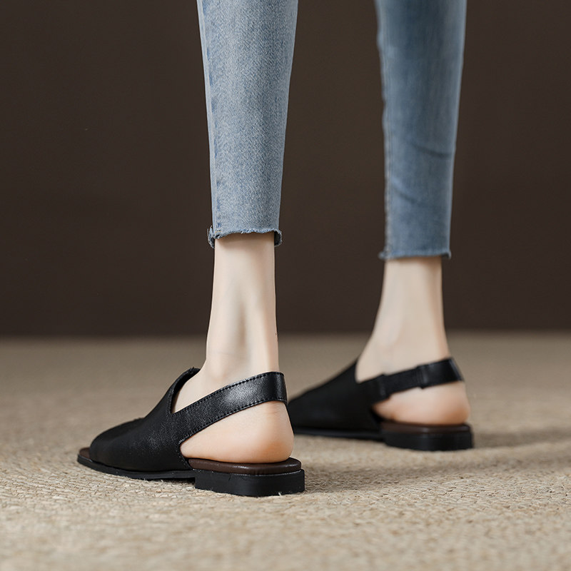 Летние черные пляжные босоножки, в западном стиле, из натуральной кожи, мягкая подошва, 2024 года