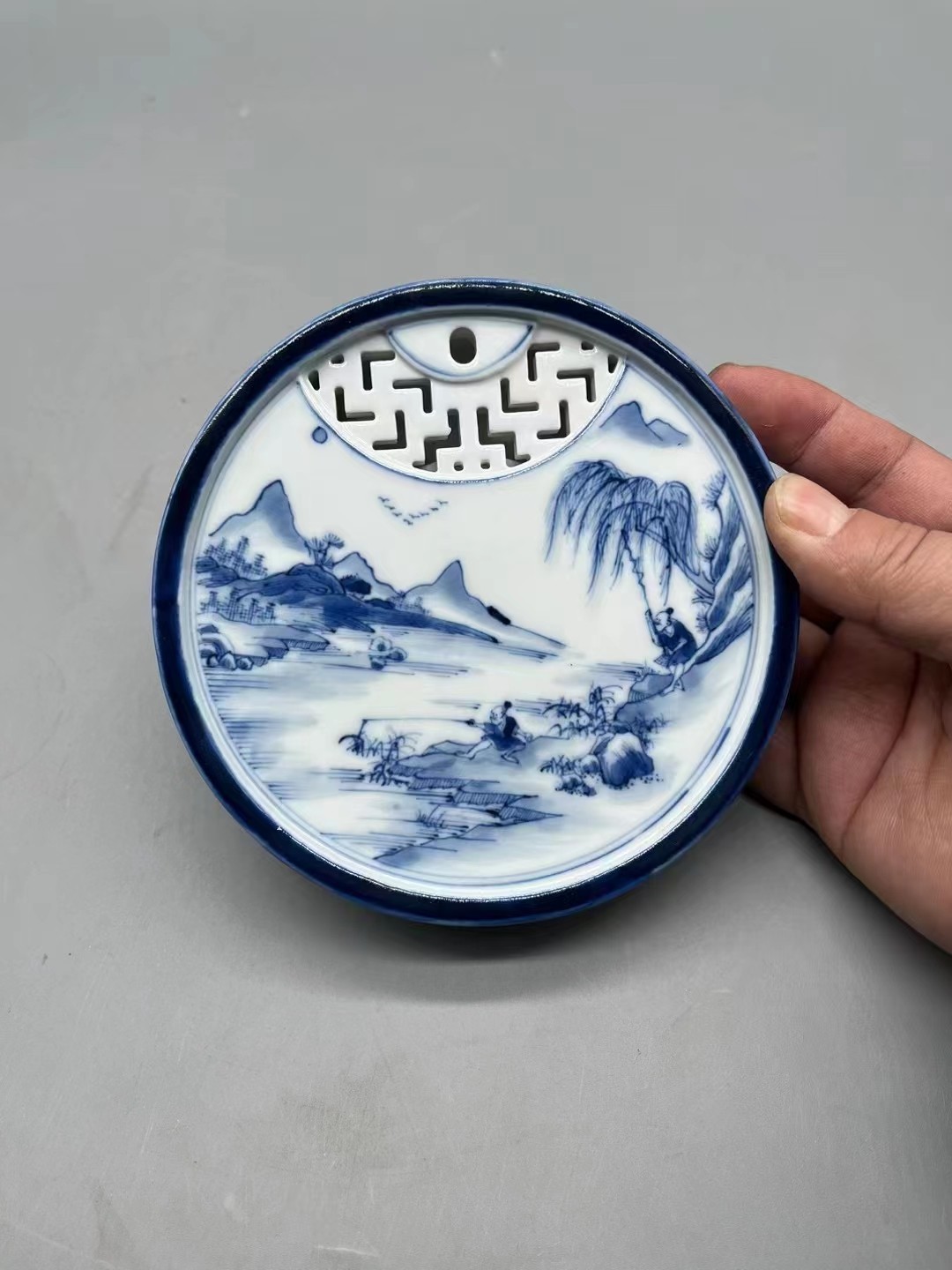 Во время культурной революции Джингджэна, старого фабричного грузового фарфора в ручной и белой ландшафтной лостовой монетной монете 1970 -х годов.