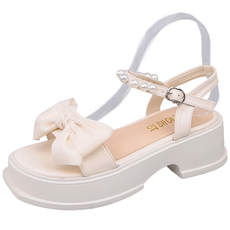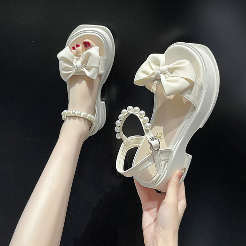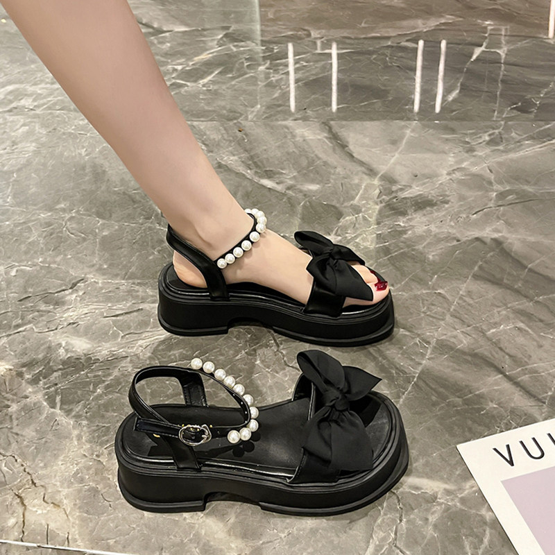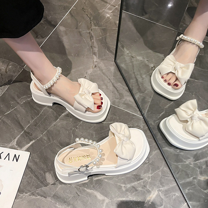 Летние сандалии на платформе с бантиком, дизайнерская высокая обувь, коллекция 2023, тренд сезона, французский стиль
