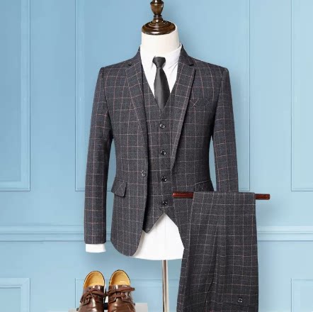 Мужской комплект, пиджак классического кроя, 3 предмета, в корейском стиле