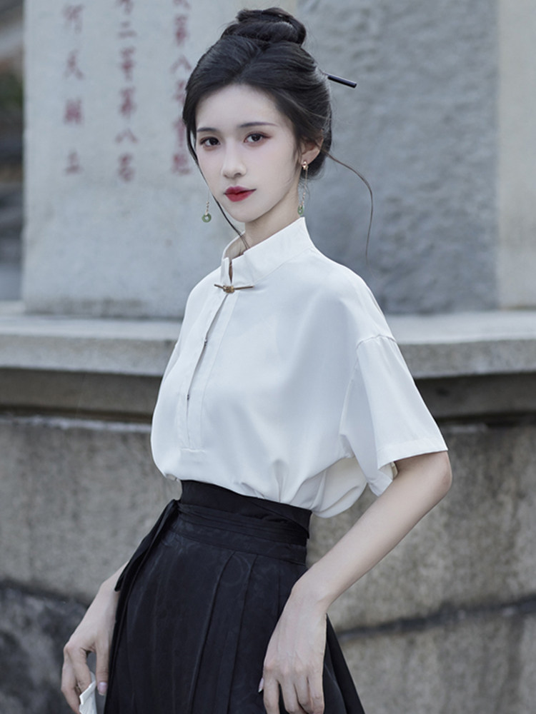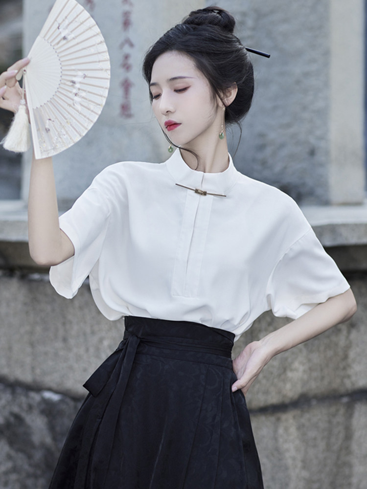 Рубашка, летнее ханьфу, китайский стиль, короткий рукав