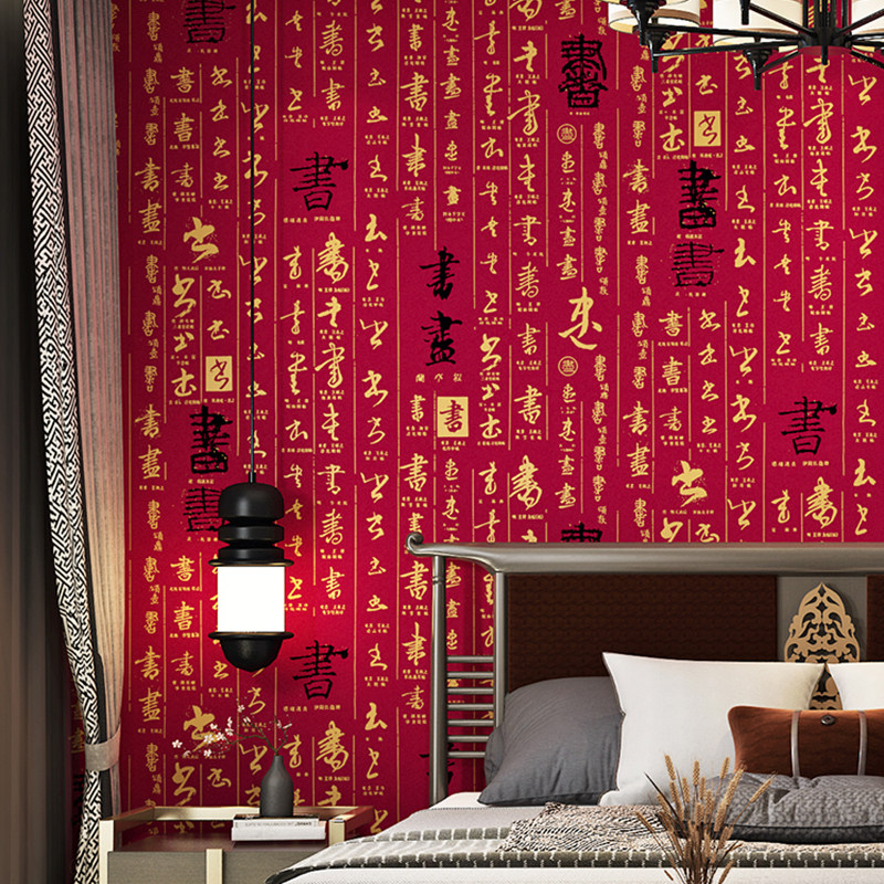 Новый китайский китайский красный классический дзен обои сами по себе обучение каллиграфия Каллиграфия живопись фоновая отель отель чайный дом обои