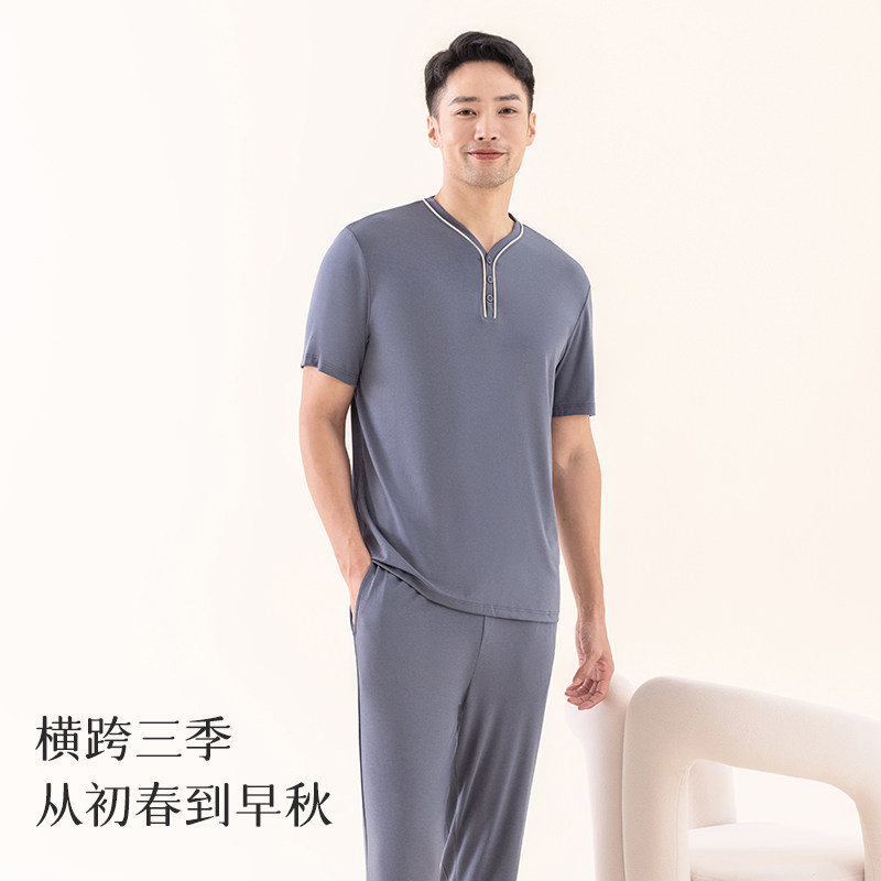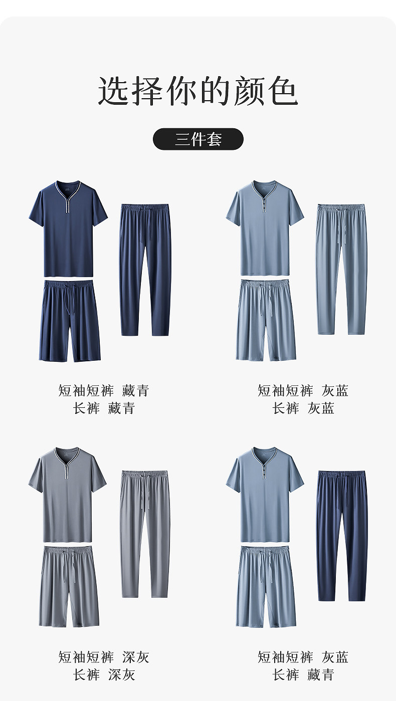 Пижама, мужской летний тонкий комплект, 3 предмета, большой размер, короткий рукав