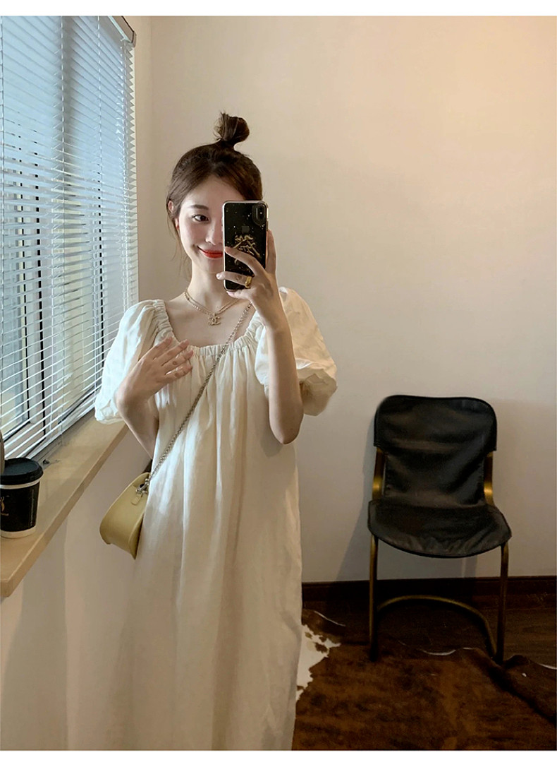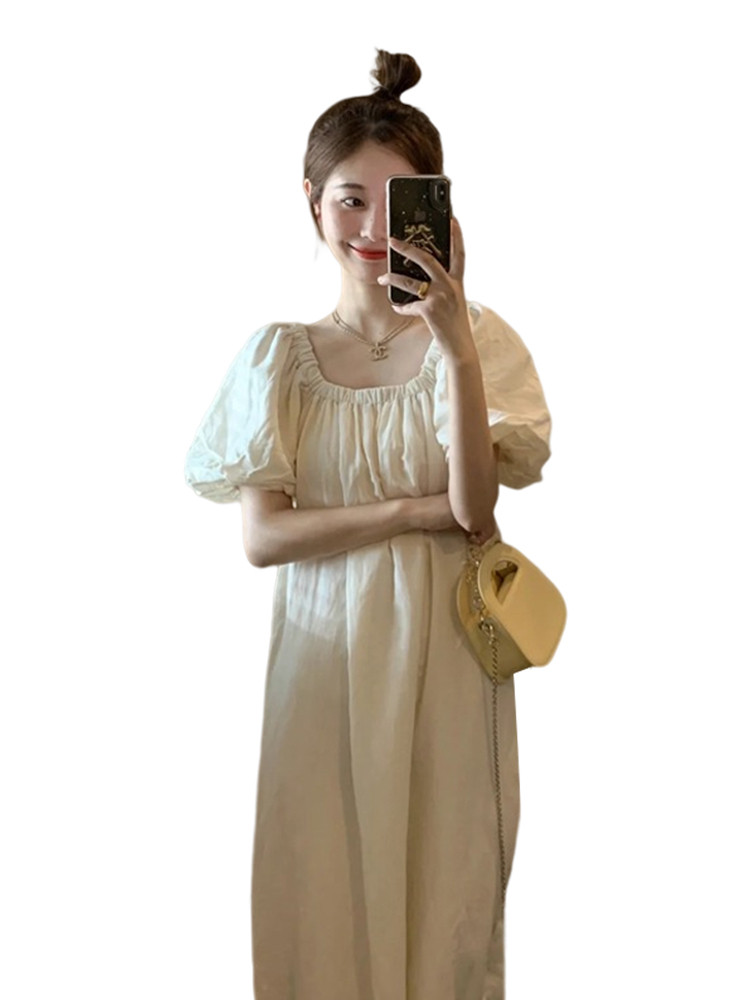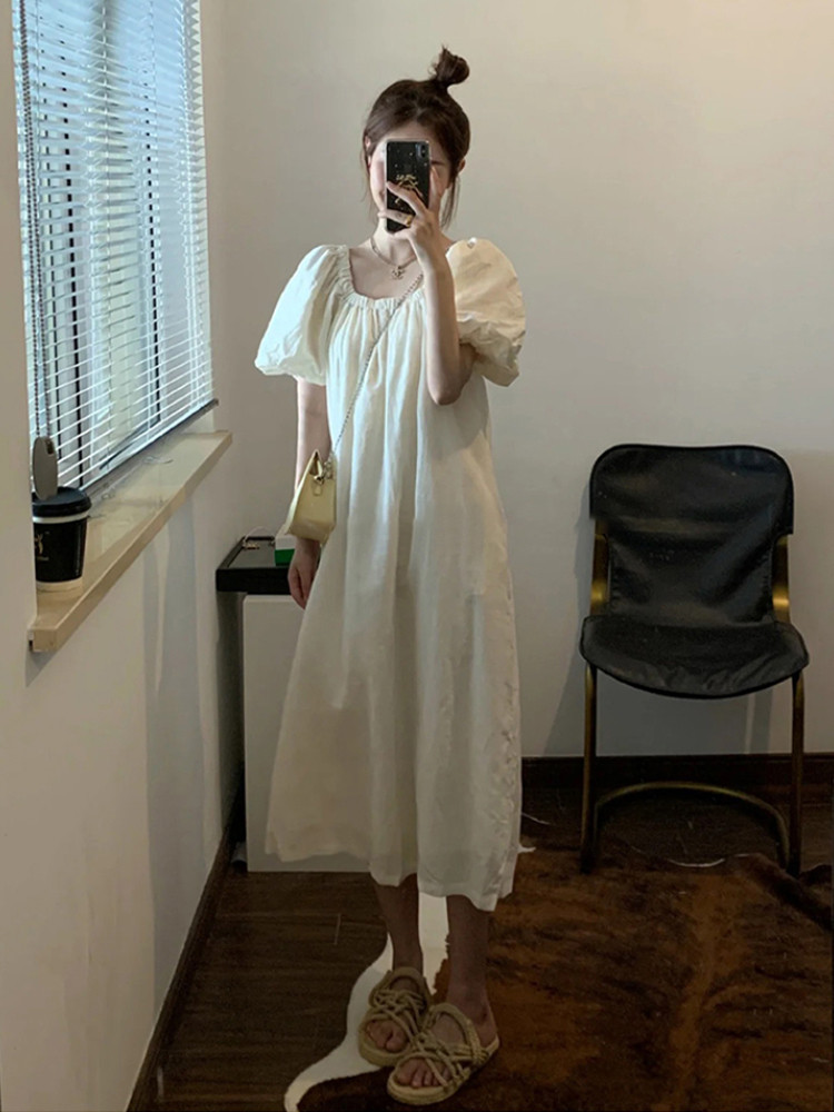Белое летнее платье, длинная юбка, французский стиль, подходит для подростков, свободный крой