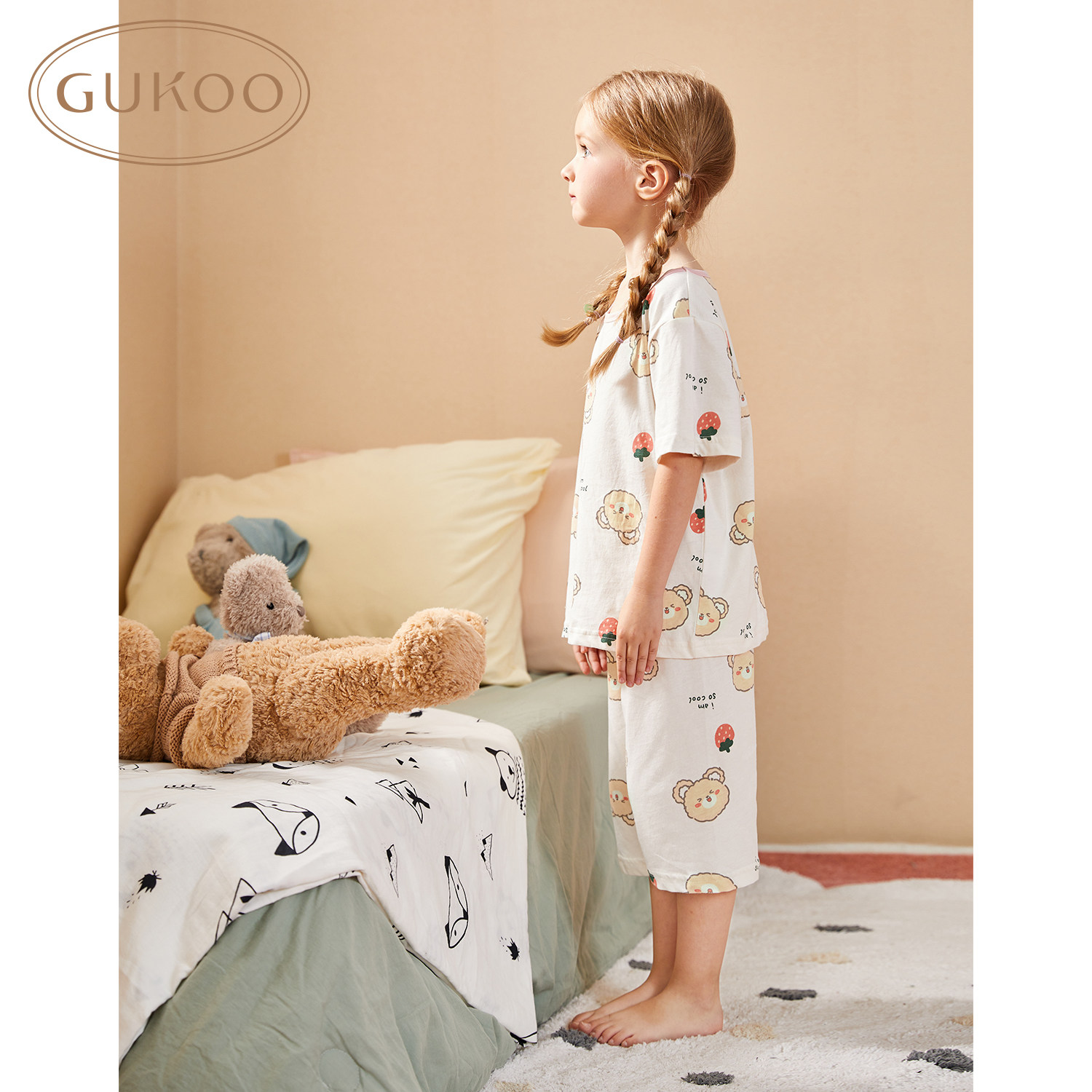 Летняя пижама, детский комплект с круглым воротником, с медвежатами