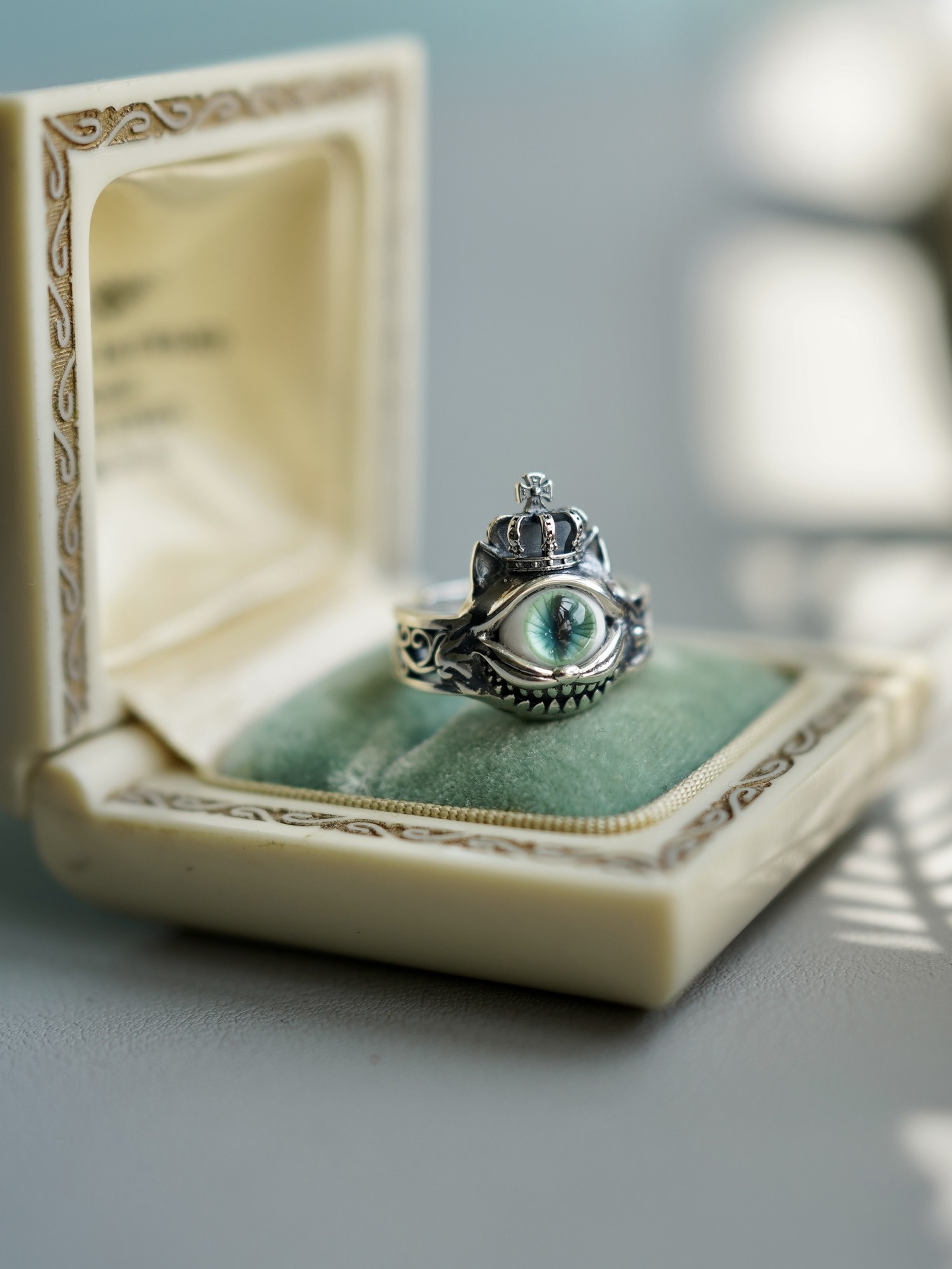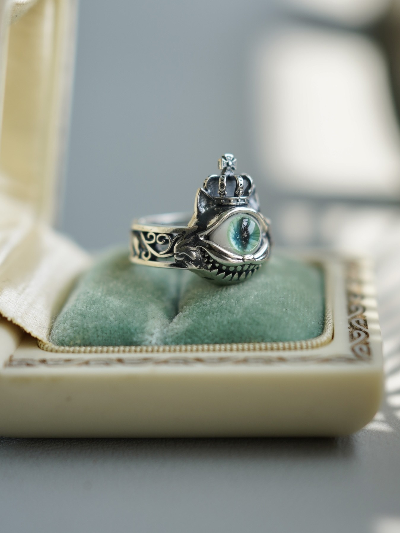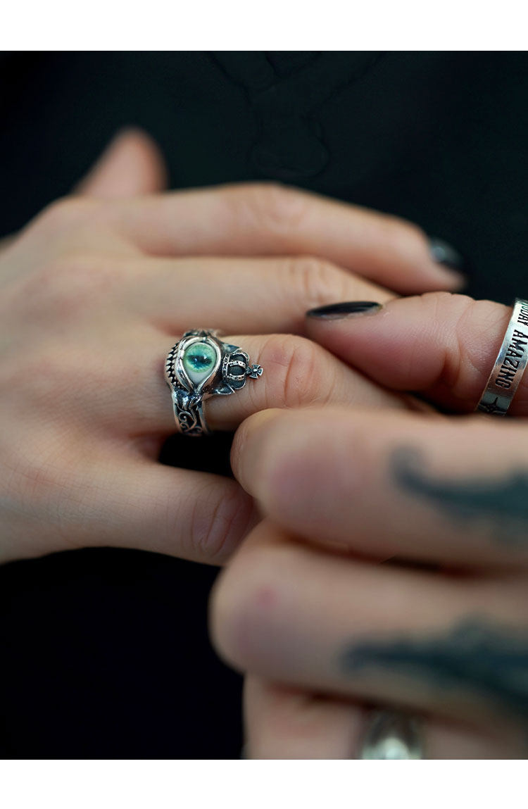 Оригинальное дизайнерское зеленое кольцо, серебро 925 пробы