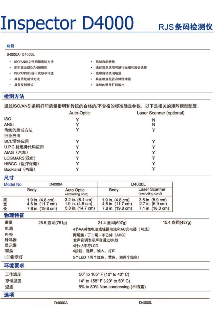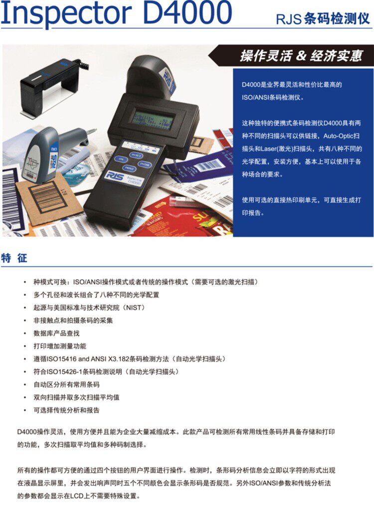 RJS Оригинальный одноразмерный штрих -код D4000L D4000SP Детектор качества D4000+A Grade Scanner L1000