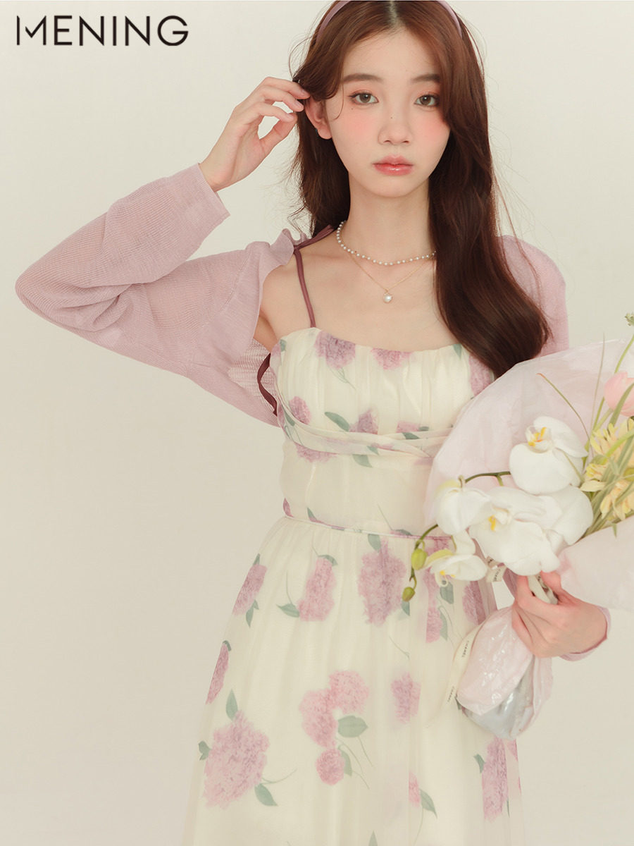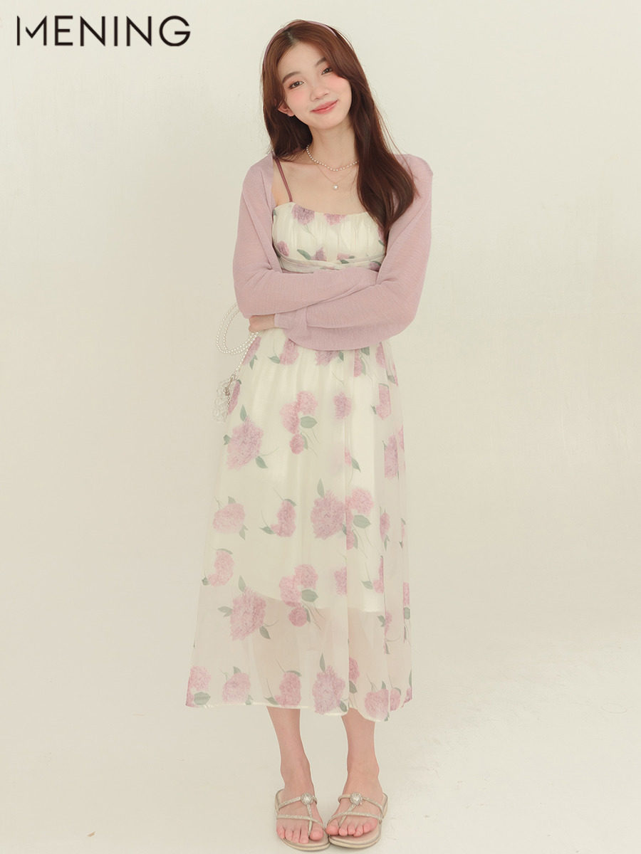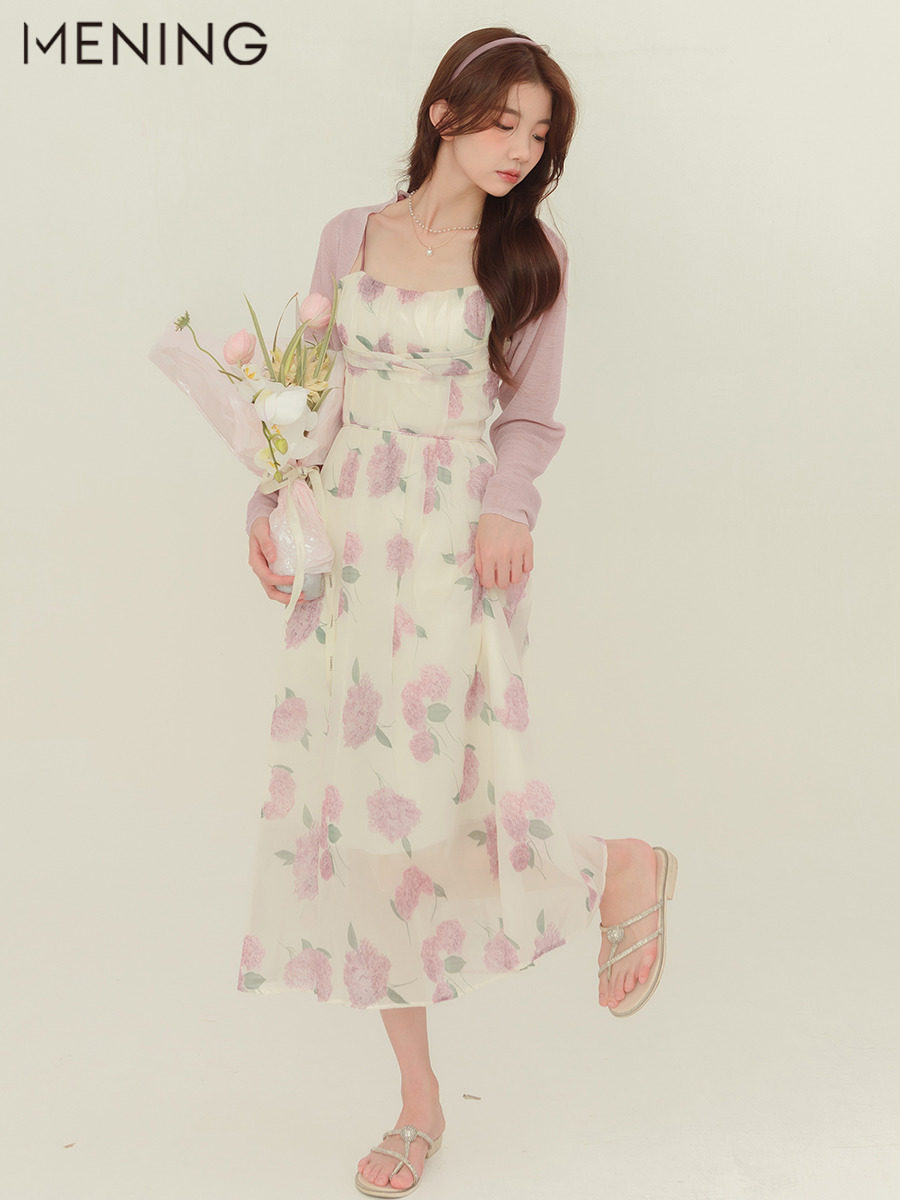 Милое платье-комбинация, приталенный корсет, летнее платье, французский стиль, цветочный принт, средней длины, А-силуэт