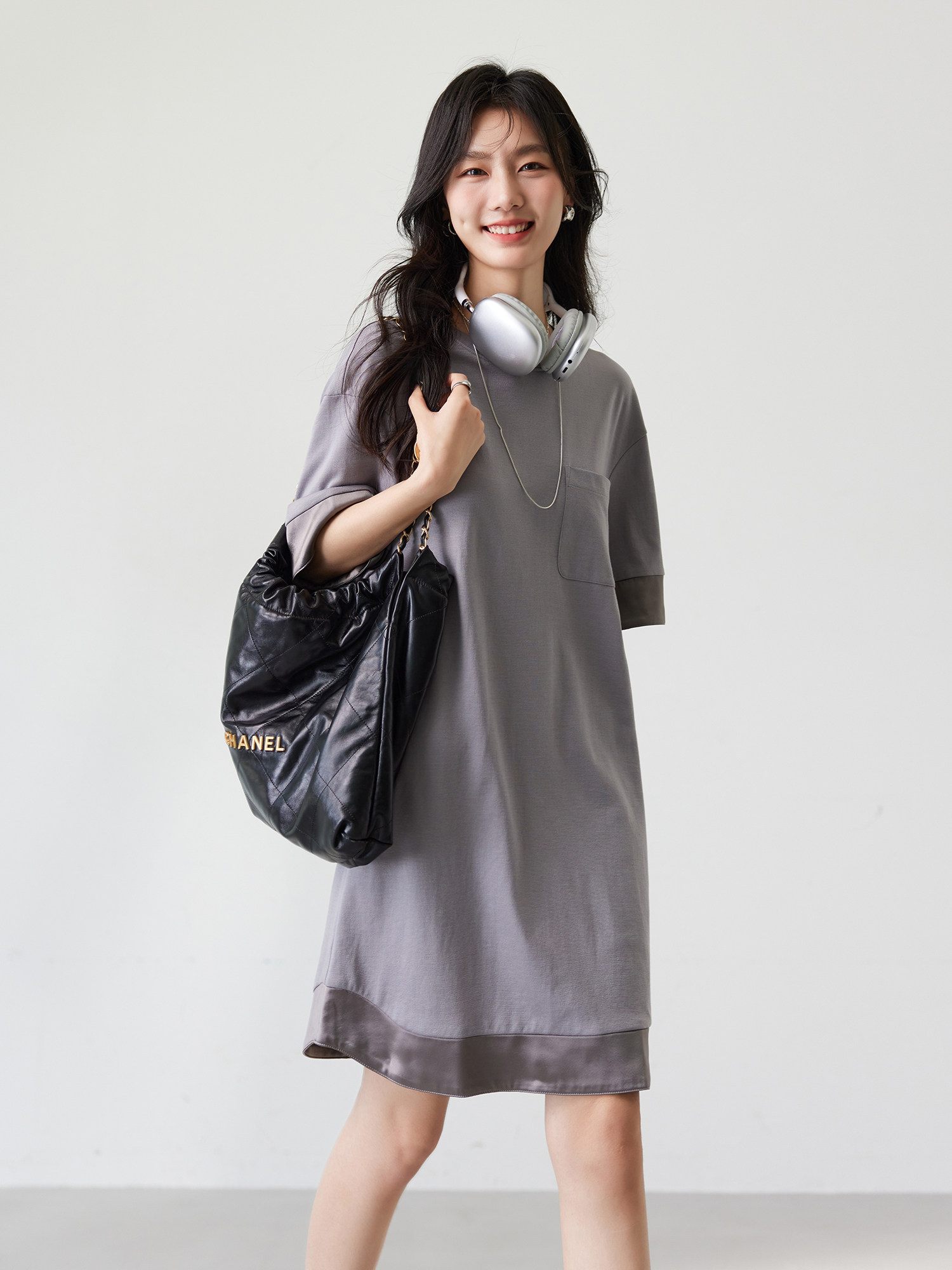 | Персонализированный круглый дизайн шеи, Подходит для большинства женских форм лица Визуальная линия растягивания шеиВыделите шею лебедя, вышли из формы лица Дизайн дуги края сумки, оставляя свободное количество, удобное ежедневное действие Подол и манжетыПереключите сатининную ткань | ||