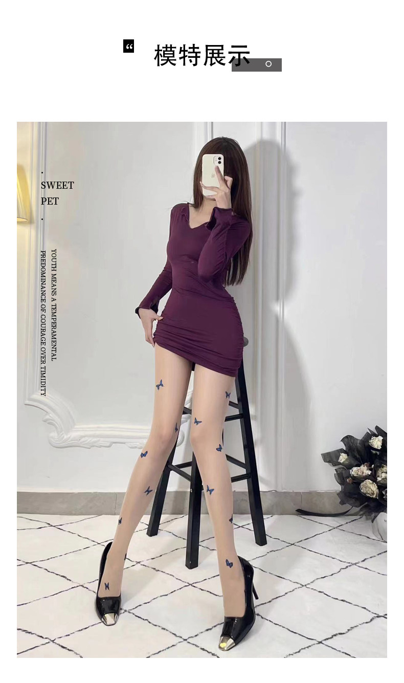 Интересные чулки 2024 Новый JK Spicy Girl Blue Butterfly Print Черный шелк желание чисто белое цвет кожи