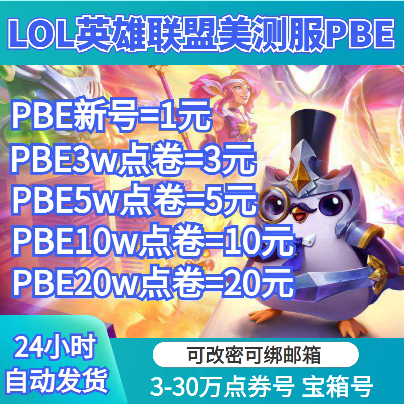 | Тип практики: | Новый аккаунт PBE 30-го уровня (купон на 0 очков), Старая учетная запись PBE уровня 30 (поставляется с купоном на 3w очков), Старый аккаунт уровня PBE30 (приносит купон на 5 Вт очков), Аккаунт ветерана PBE 30 уровня (приносит 100 000 очков), Аккаунт ветерана PBE 30 уровня (приносит 200 000 очков), Старый аккаунт PBE 30-го уровня (приносит купон на 30 Вт очков), Код уровня PBE30 (40 баллов) |