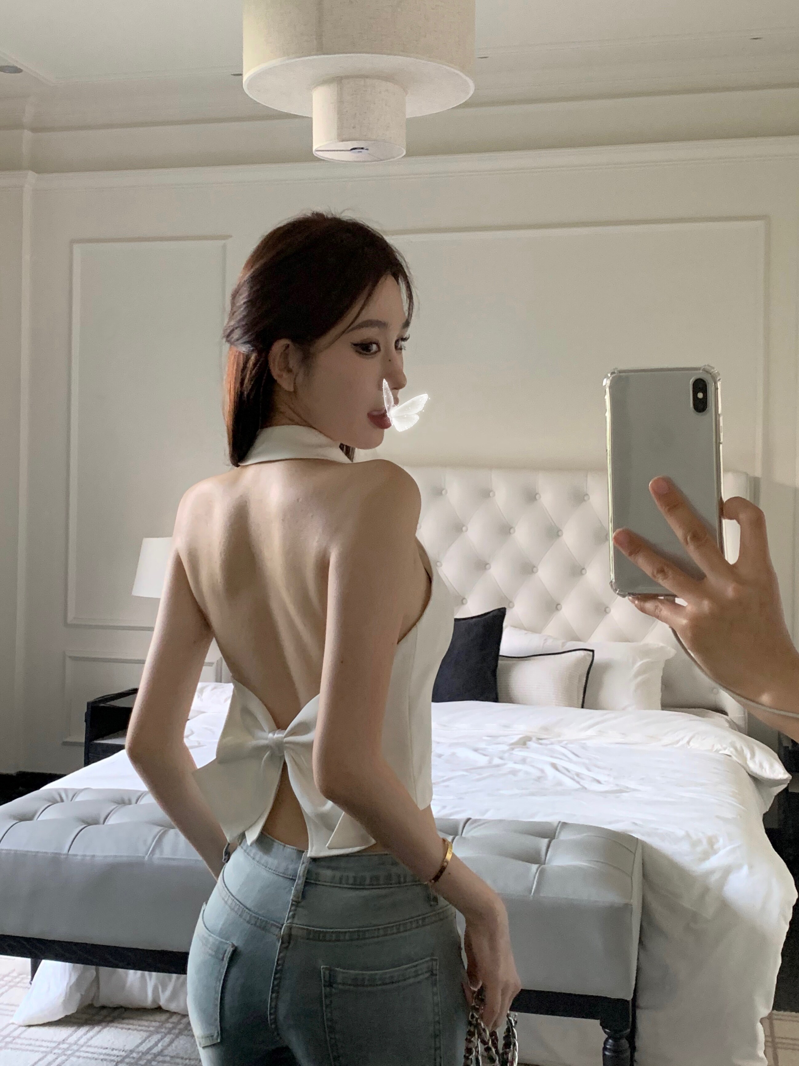 Дизайнерская рубашка с бантиком без рукавов, сексуальный топ без лямок, бюстгальтер-топ, майка, французский стиль, с открытой спиной, тренд сезона