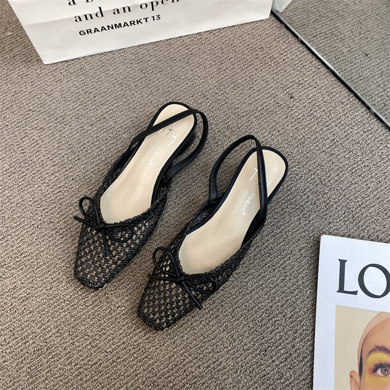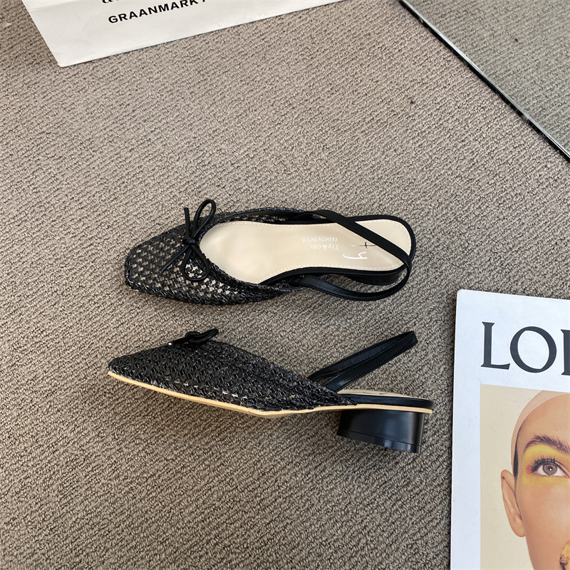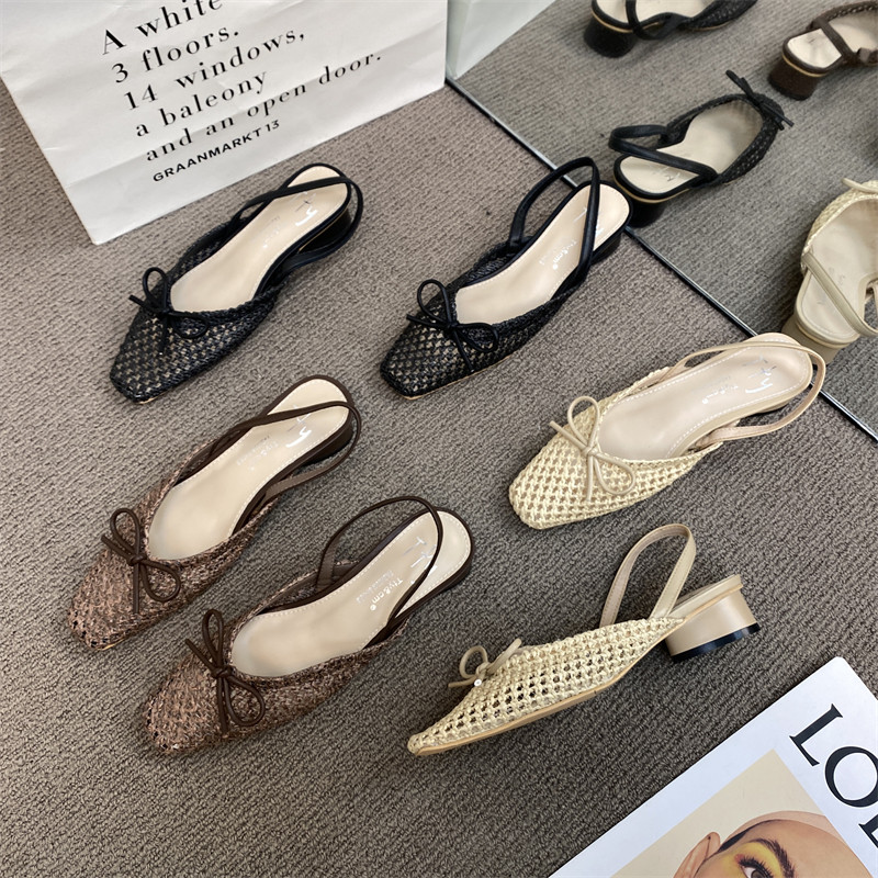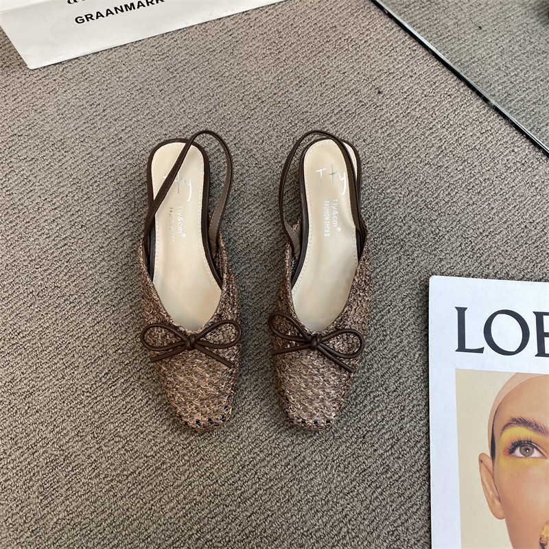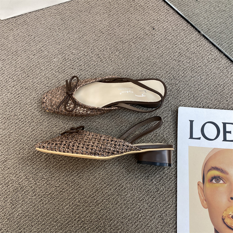 Сандалии с бантиком, летняя плетеная обувь, французский ретро стиль