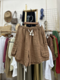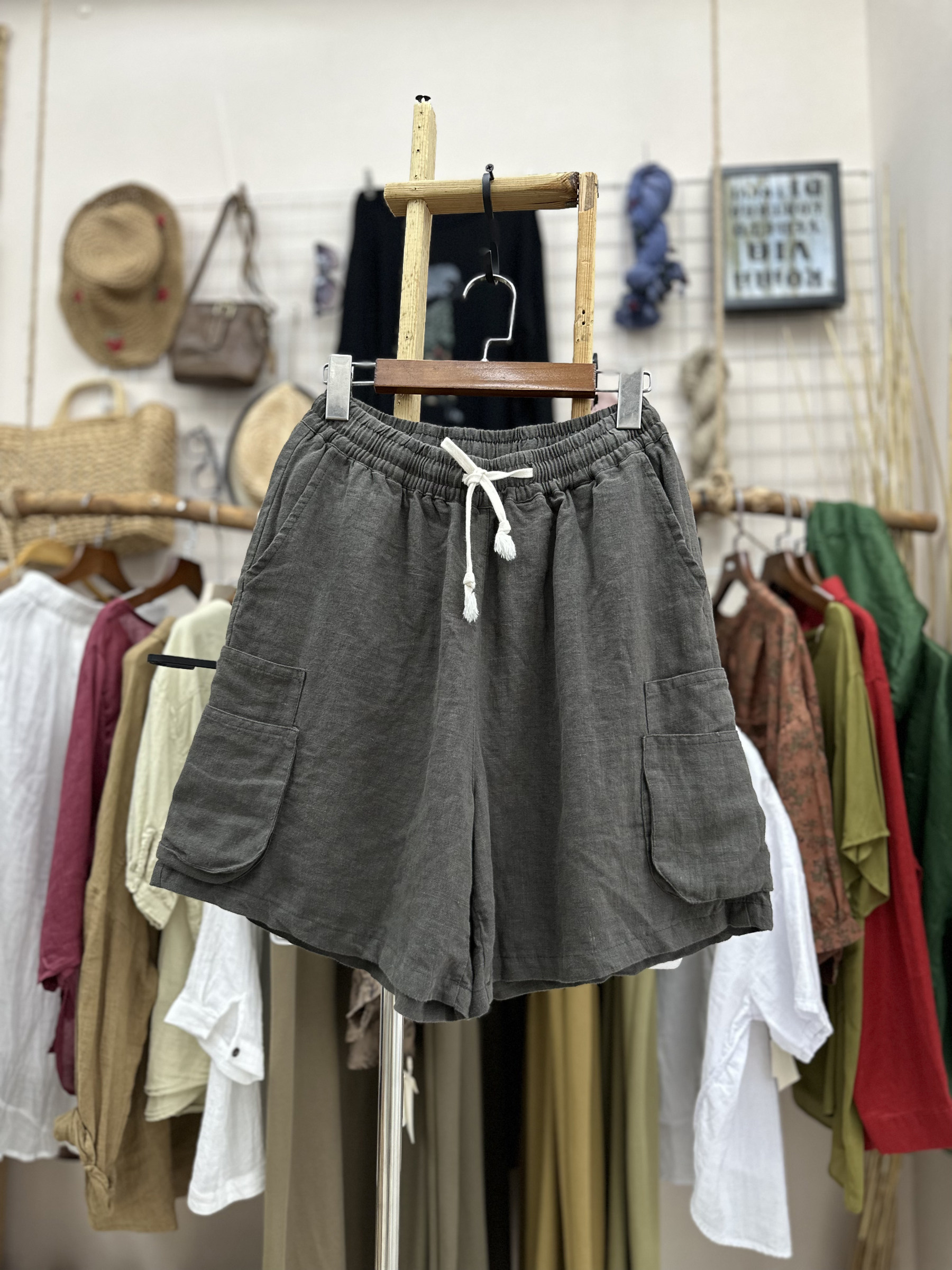 Тонкий мешочек, сумка, шорты, штаны, эластичная талия, свободный крой, из хлопка и льна