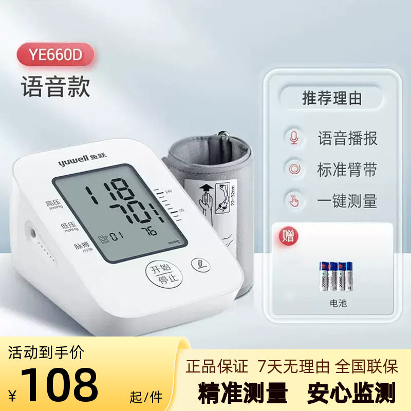 Fish Yue Voice Electronic Electronics Meter Старик использует инструмент с артериальным давлением типа верхней части