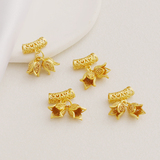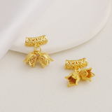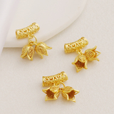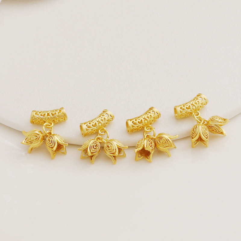 - Набор матовых золотых подвесок с полыми бочонками и бутонами цветов.