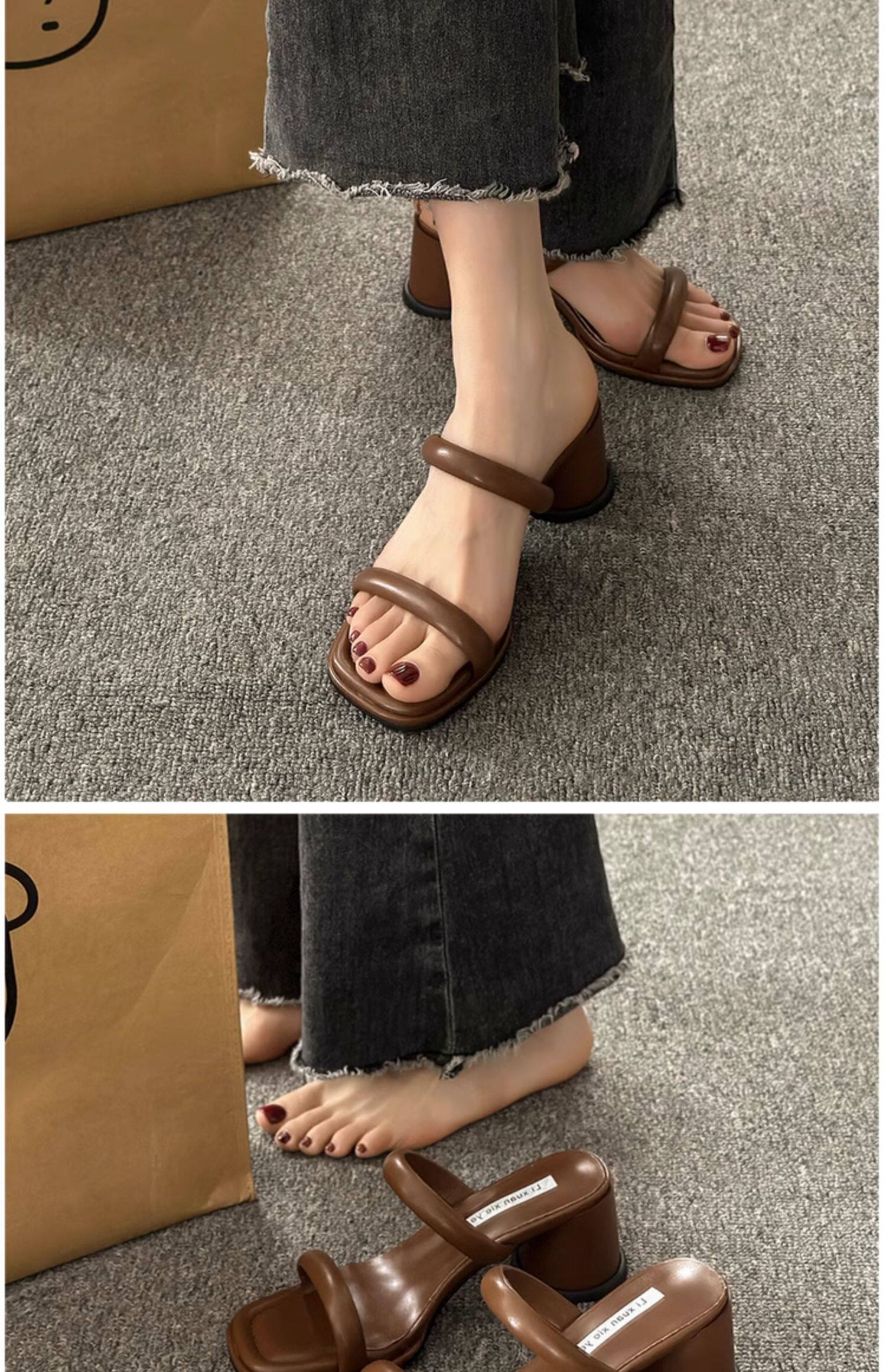 Высокие слайдеры, тапочки, летняя обувь, сандалии, коллекция 2023, французский стиль