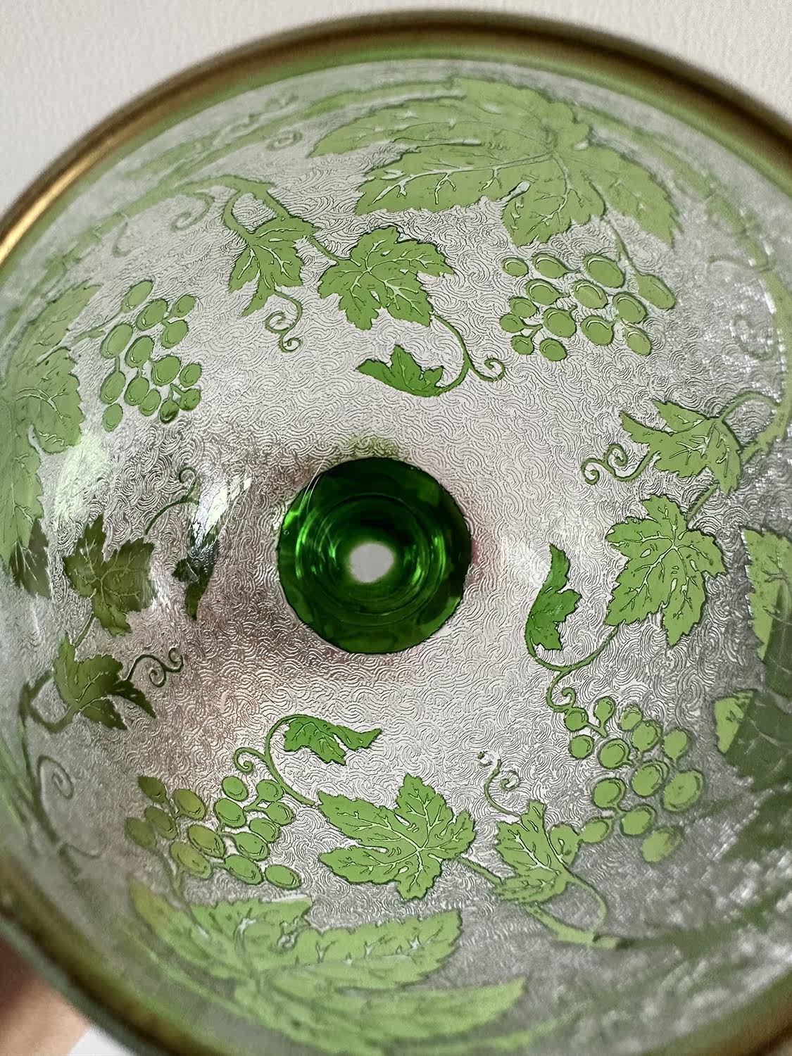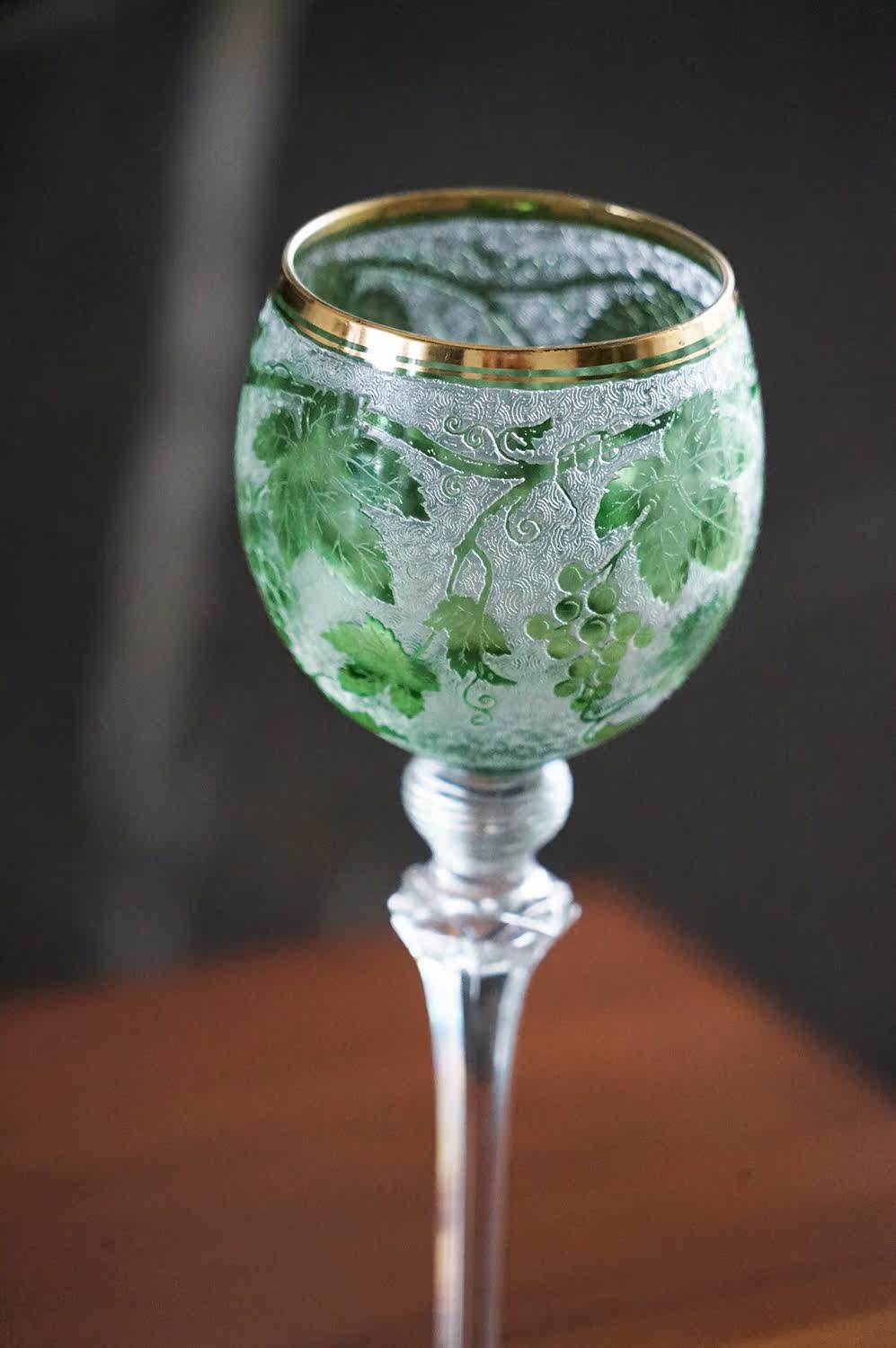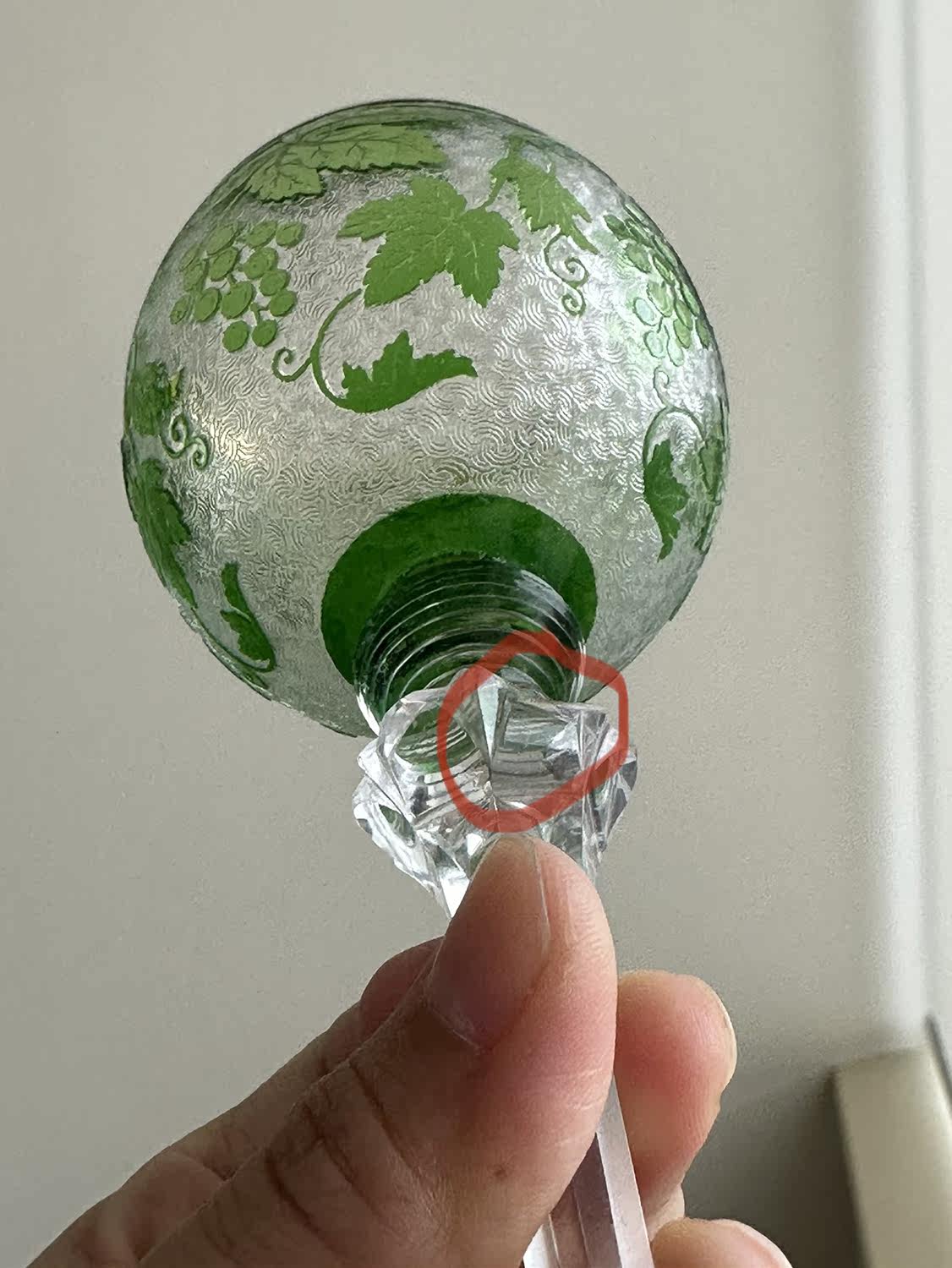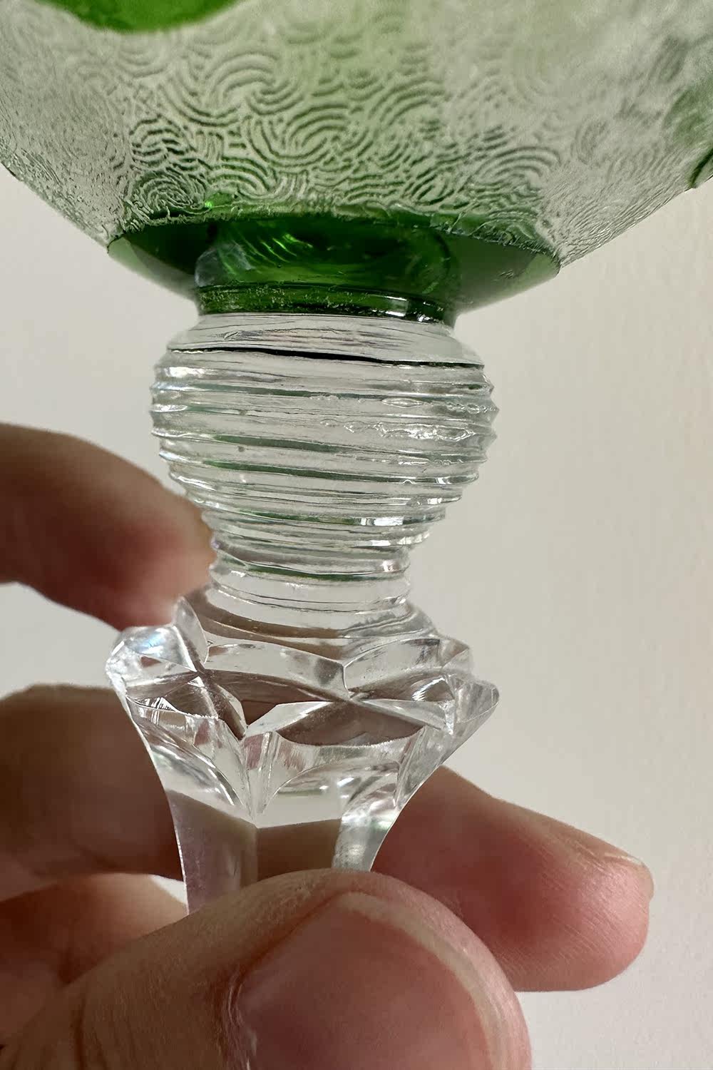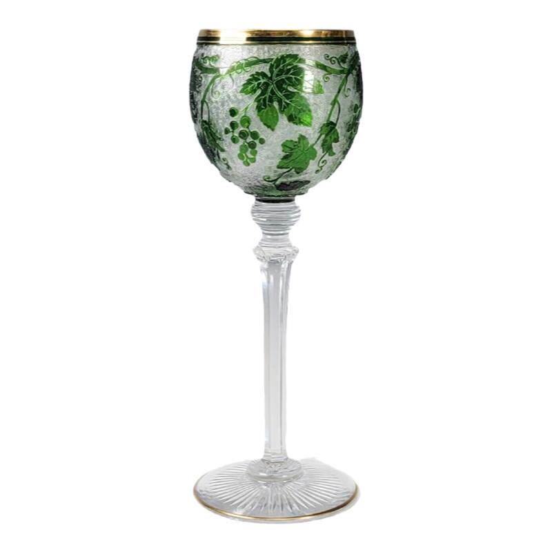Spot Special Antique 19 -го века Франция Сент -Луис/Сан -Луис Грин Двойной слой хрустальный винный бокал