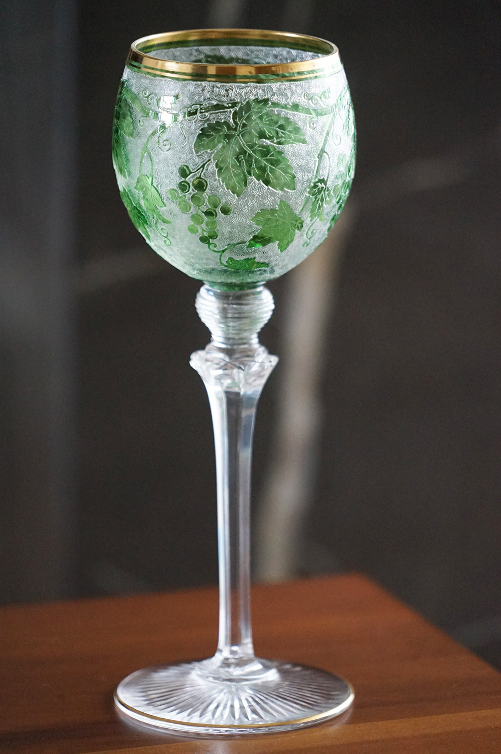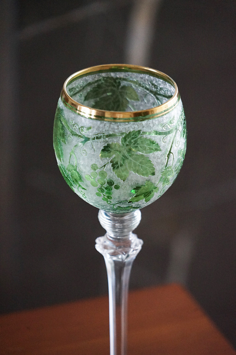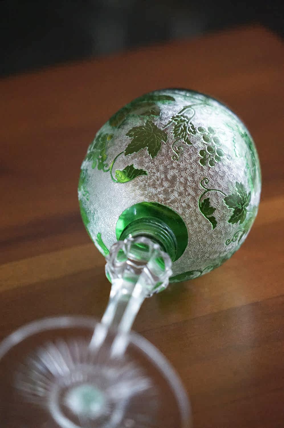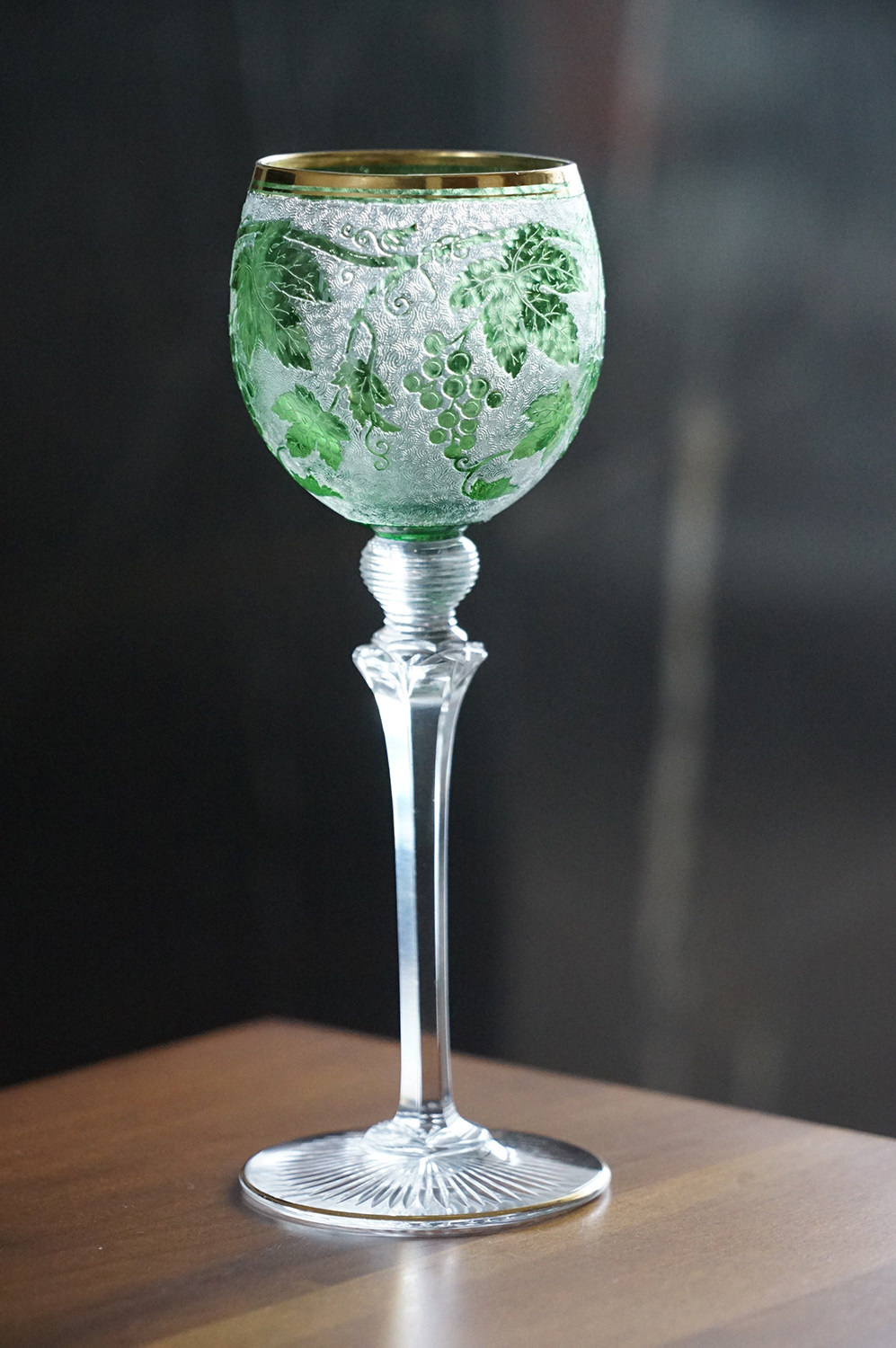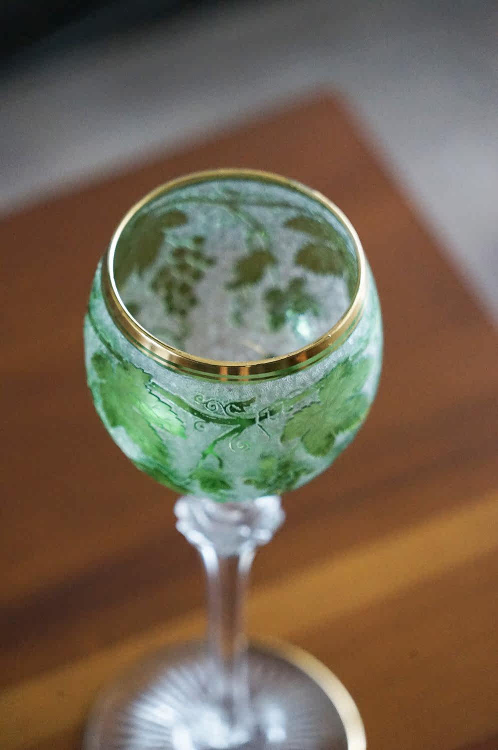 Spot Special Antique 19 -го века Франция Сент -Луис/Сан -Луис Грин Двойной слой хрустальный винный бокал