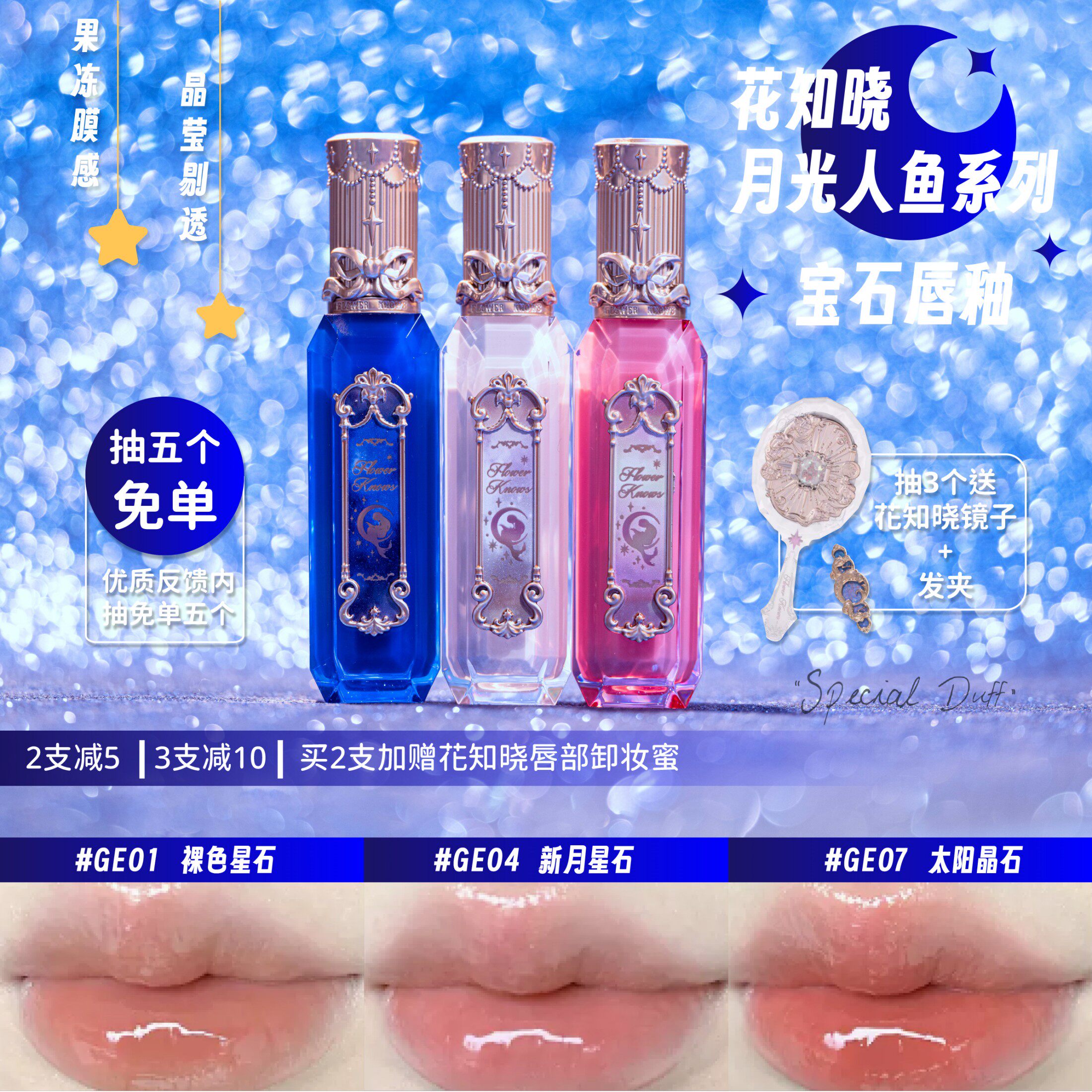 Хуа Чжи Сяоюе Русалка серия Gem Гемба для губы GE03 Зеркало GE7GE01 GE7GE01