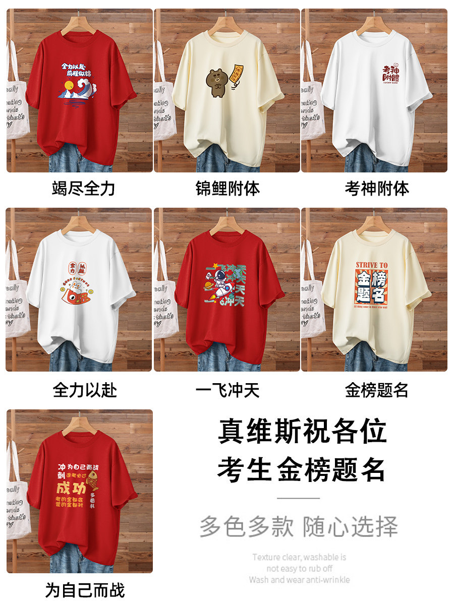 Экзаменационная футболка Jeanswest для женщин 2024, новый стиль, вступительный экзамен в среднюю школу и колледж, аплодисменты, вдохновляющий экзамен большого размера, удача, одежда для выпускного класса