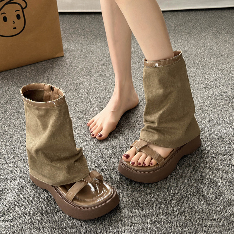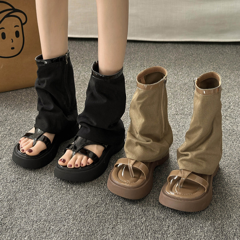 Штаны, летние сандалии, высокая обувь на платформе, ретро короткие сапоги