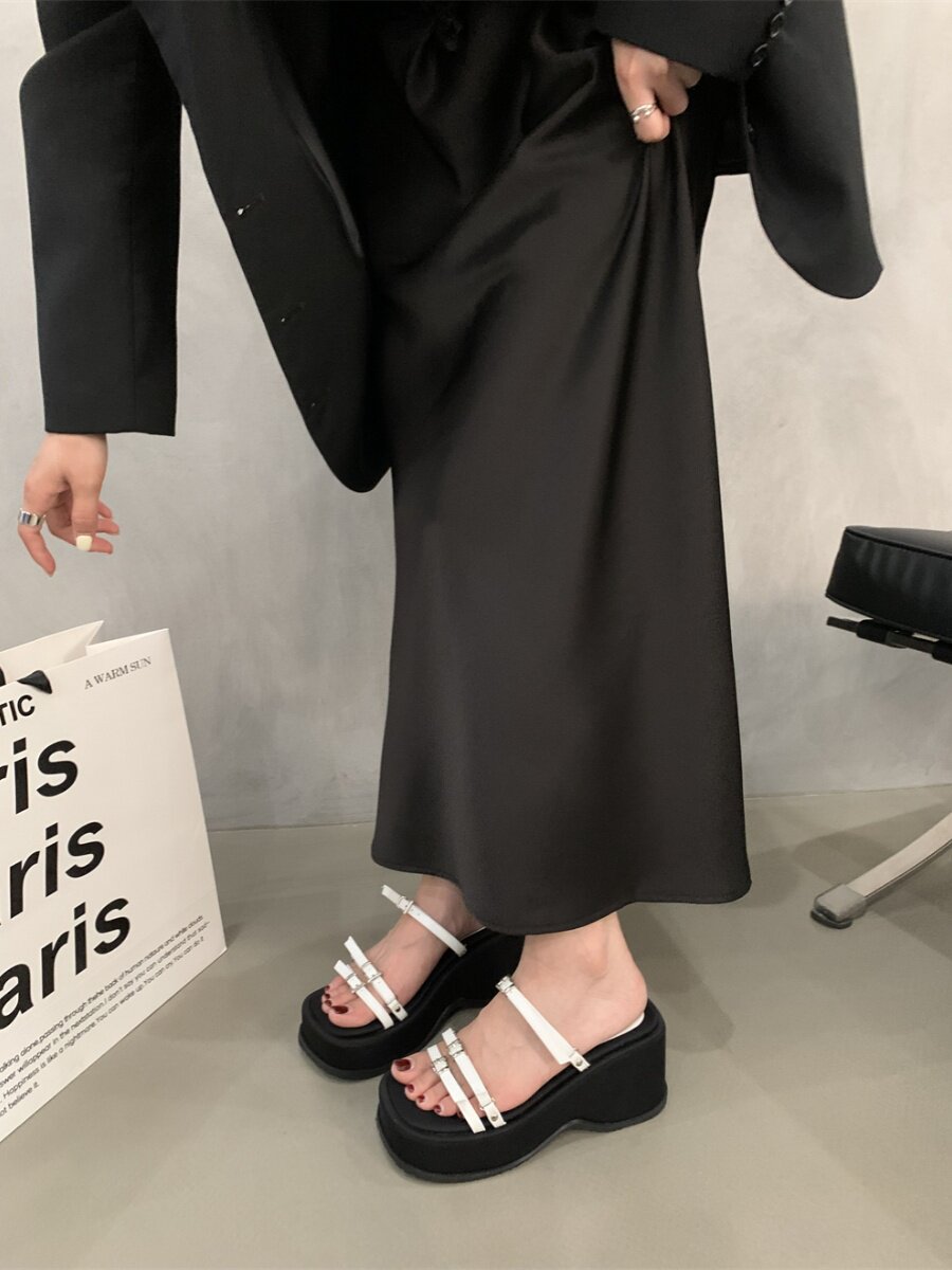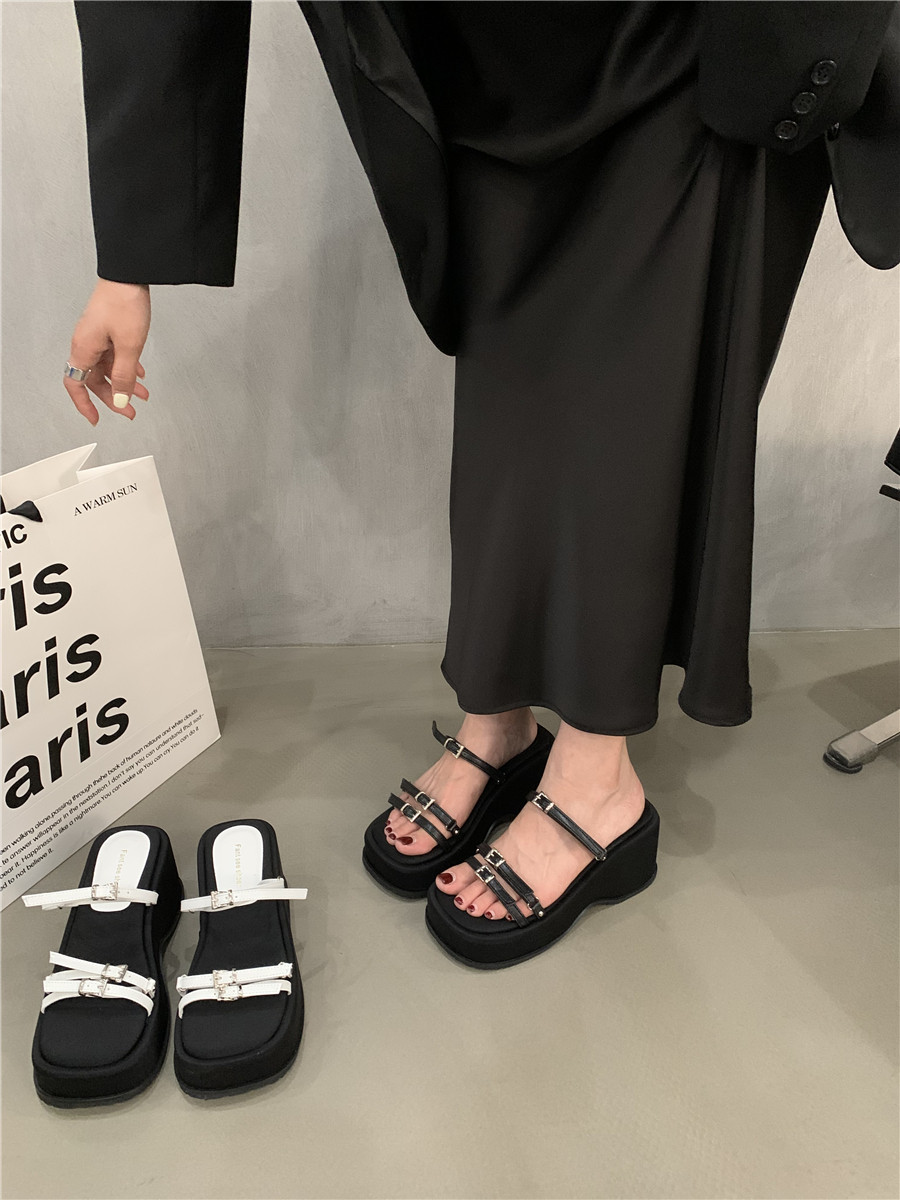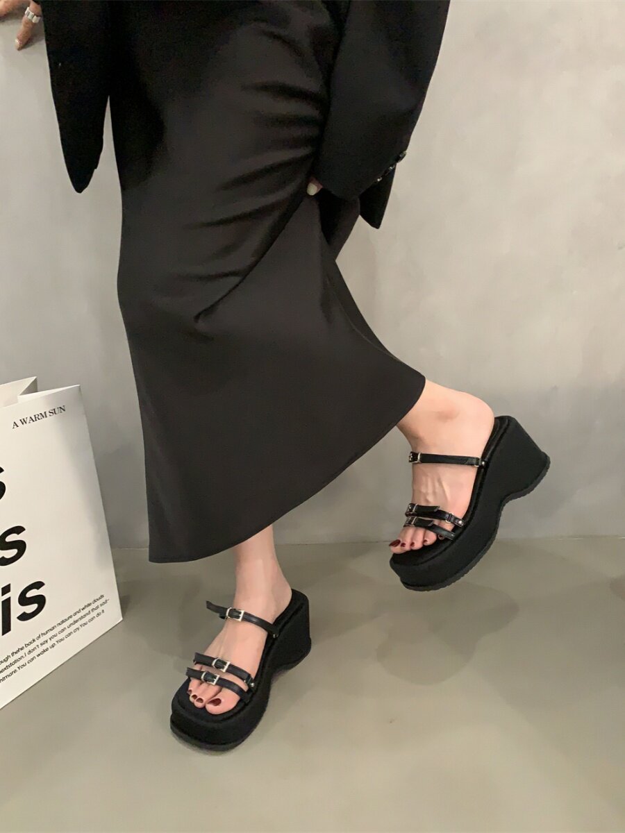 Тапочки, высокие сандалии на платформе, летняя обувь, слайдеры, подходит для подростков, французский стиль