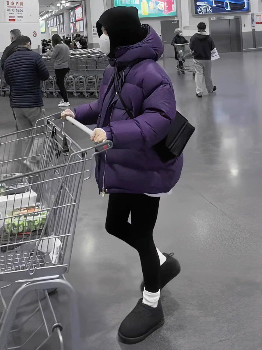 Зимний модный удерживающий тепло сиреневый короткий пуховик, 2023, в корейском стиле