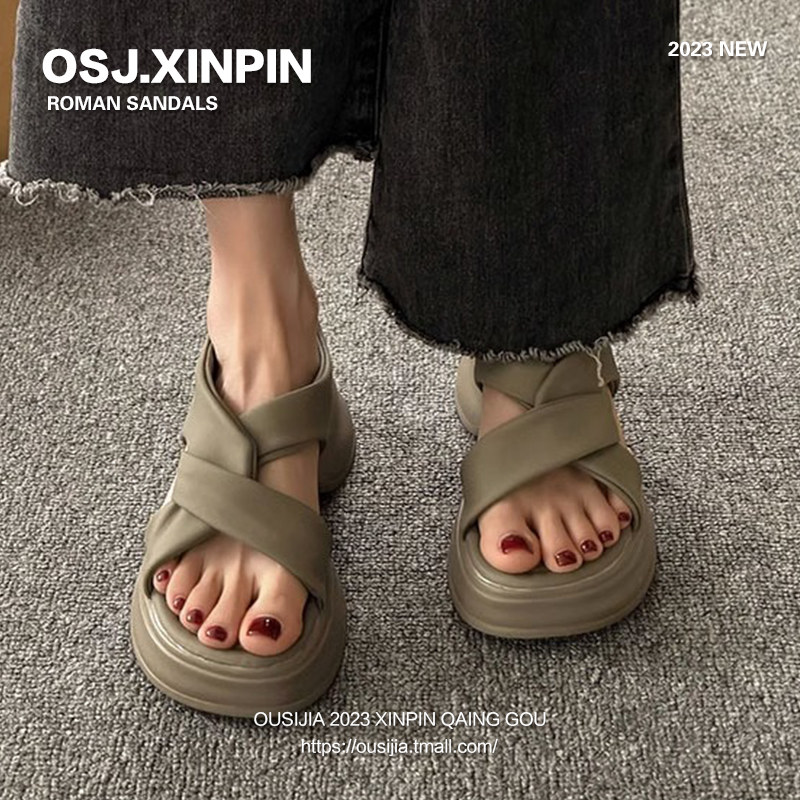 Летние сандалии, универсальная модная подходит с юбкой на платформе, пляжная обувь, популярно в интернете, французский стиль