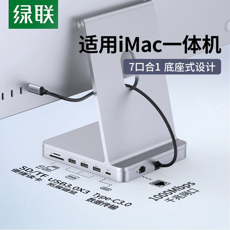 绿联 Док-станция расширения, подходящая для расширения iMac, USB-машина «все в одном», 24-дюймовый мини-адаптер для аксессуаров, тип преобразователя, настольный компьютер, сетевой кабель, интерфейс для чтения данных, кронштейн для повышения высоты рабочего стола